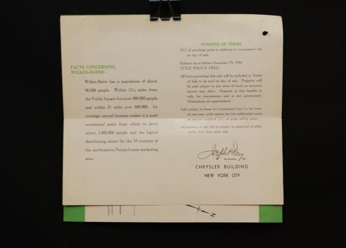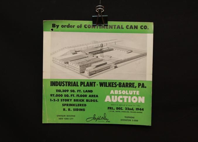 FLYER, 1944, REAL ESTATE, PA. BY ORDER OF CONTINENTAL CAN CO. INDUSTRIAL PLANT. ABSOLUTE AUCTION, JOSEPH DAY, AUCTIONEERS. MAP AND LISTING. OPENS UP TO 9" X 14 3/4"Created By