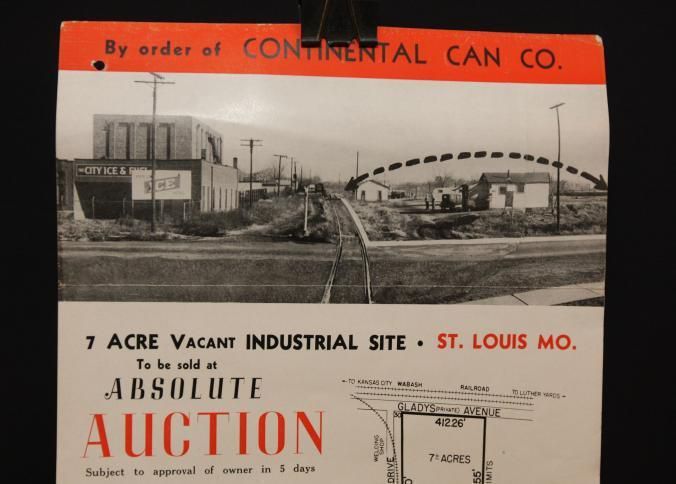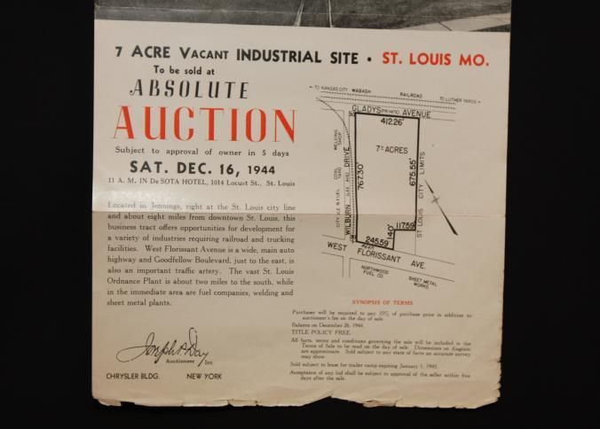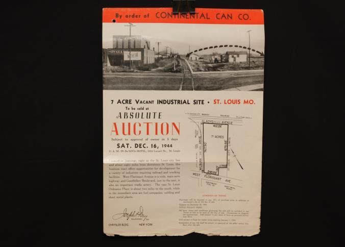 FLYER, REAL ESTATE, 1944, MO. CONTINENTAL CAN CO. 7 ACRE VACANT INDUSTRIAL SITE, ABSOLUTE AUCTION. JOSEPH P. DAY, AUCTIONEERS. PHOTO, MAP, TERMS. 9" X 12"Created By