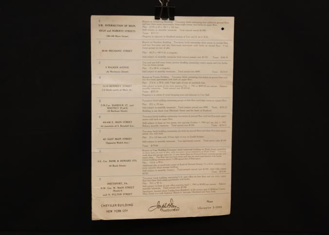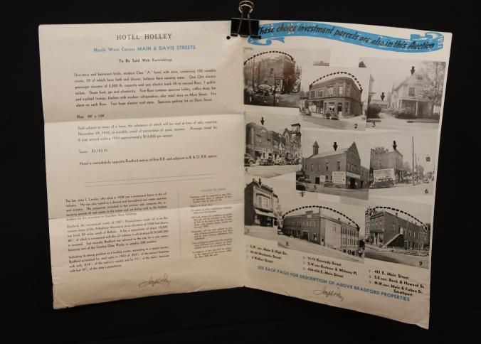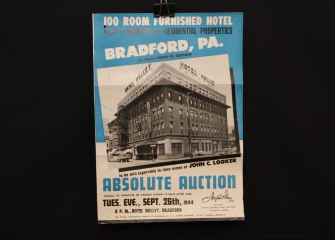 FLYER, 1944, REAL ESTATE, PA. 100 ROOM FURNISHED HOTEL, ALSO 9 BUSINESS & RESIDENTIAL PROPERTIES. ABSOLUTE AUCTION. JOSEPH DAY, AUCTIONEERS. PHOTOS, DESCRIPTIONS, TERMS. 9" X 12" FOLDEDCreated By