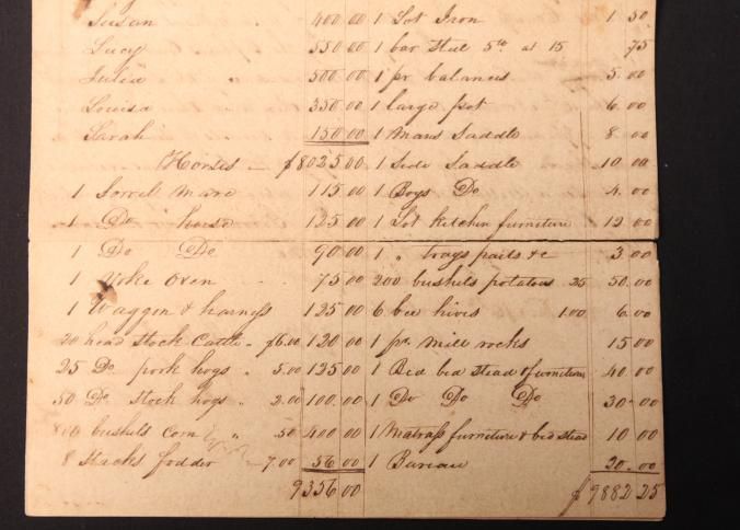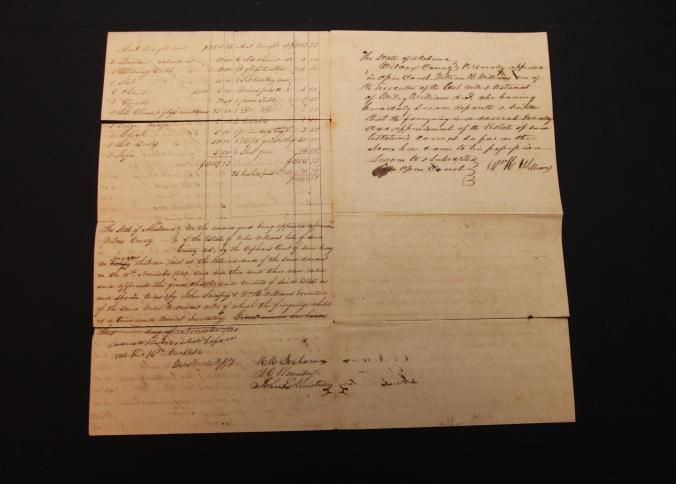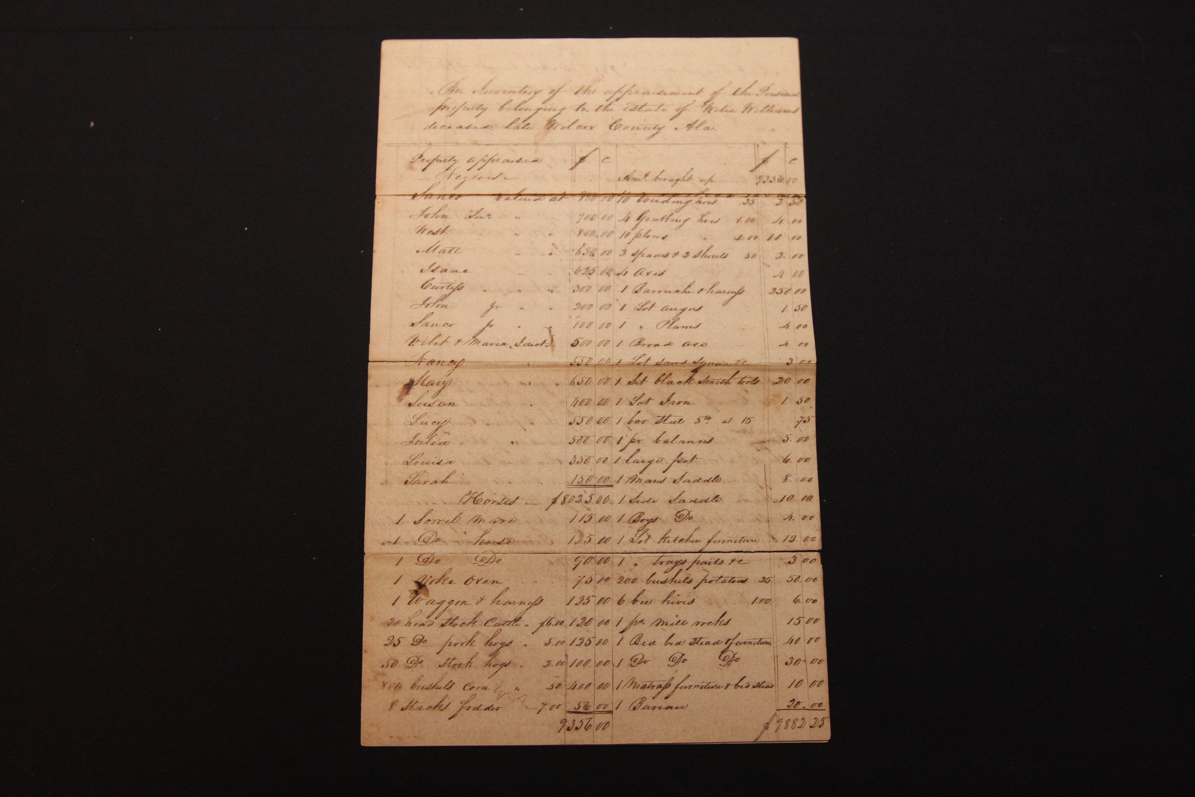 DOC, 1846, AL, ESTATE SETTLEMENT. SLAVES, HOUSEHOLD. 7 3/4" X 12 1/2" FOLDED