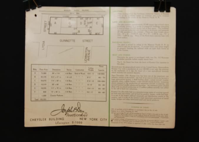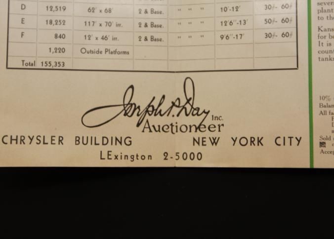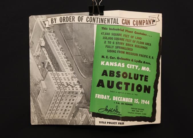 FLYER, 1944, REAL ESTATE, MO. BY ORDER OF CONTINENTAL CAN CO., INDUSTRIAL PLANT TO BE SOLD AT ABSOLUTE AUCTION. JOSEPH DAY, AUCTIONEERS. PHOTO AND MAP. 12" X 9"Created By