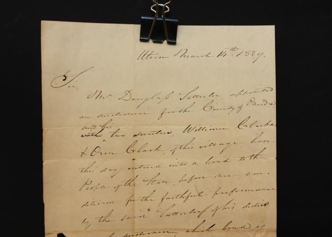 DOC, LETTER, 1829, NY. REGARDING THE APPOINTMENT OF AN AUCTIONEER FOR THE COUNTY OF ONEIDA. 8" X 13 1/4"Created By