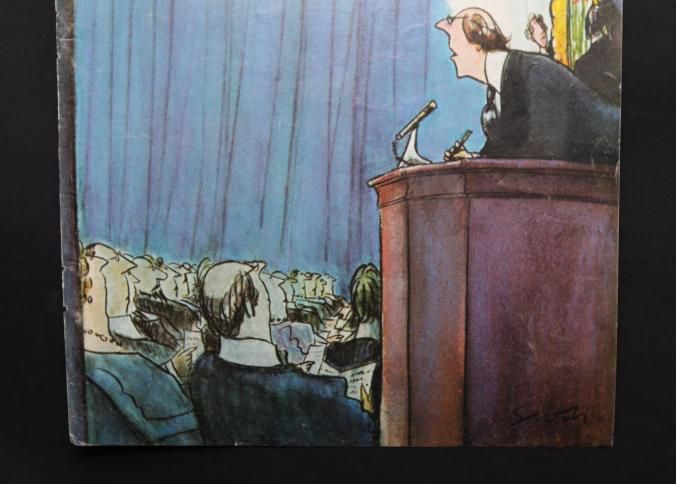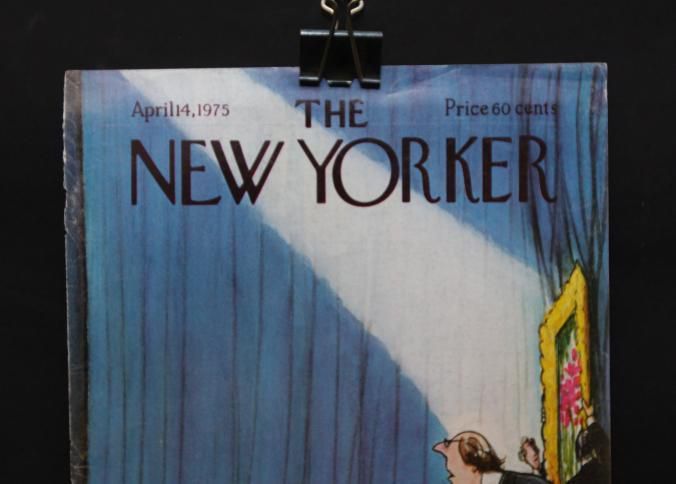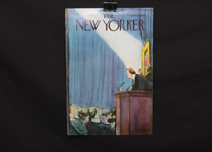 MAG COVER, THE NEW YORKER, APRIL 1975, COLOR ILLUS OF ART AUCTION. 8 1/2" X 11 1/2"
