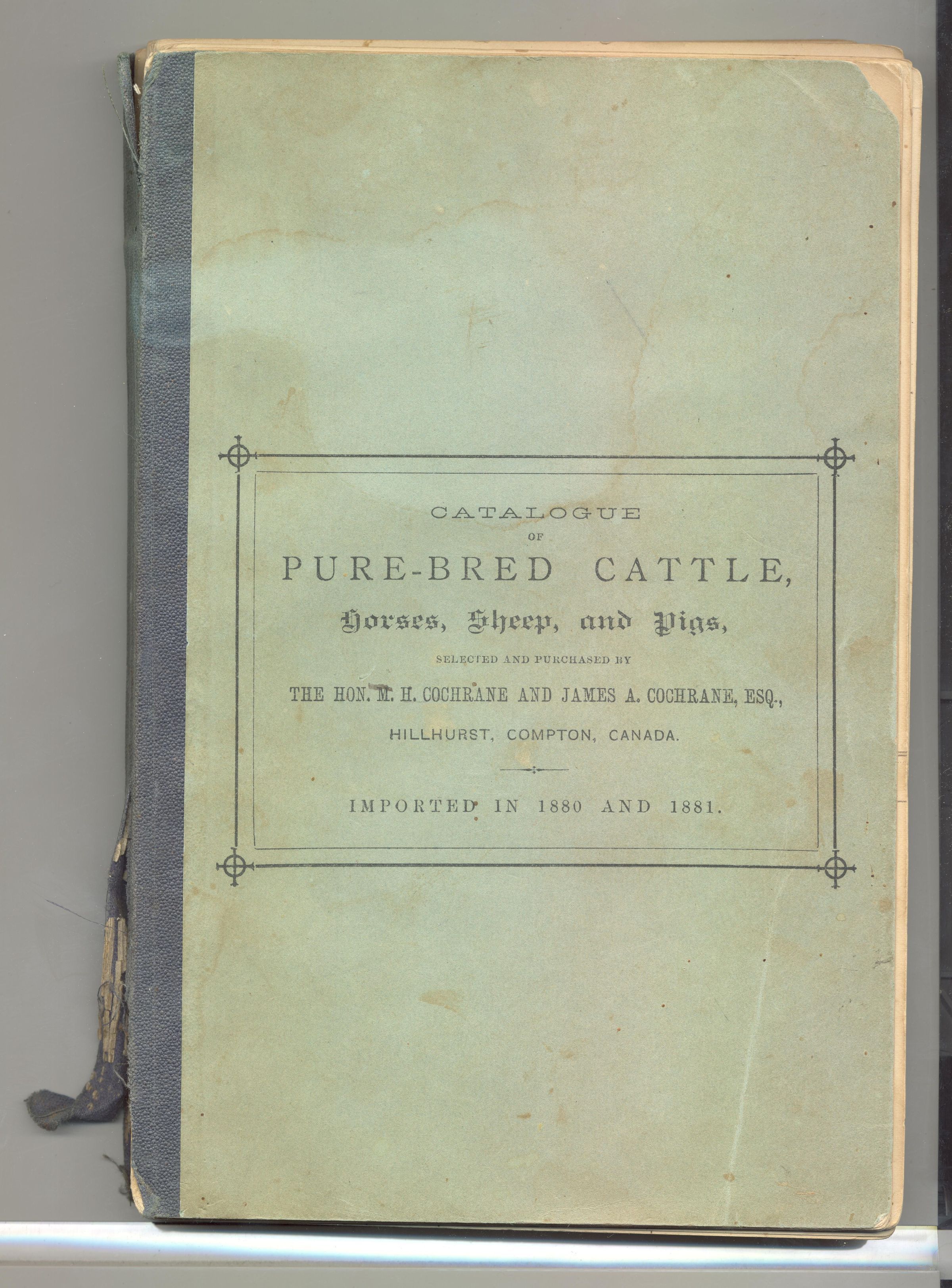 CAT, CATTLE, 1881, CANADA. PURE-BRED CATTLE, HORSES, SHEEP & PIGS. 114 PP. 5 1/2" X 8 1/4"