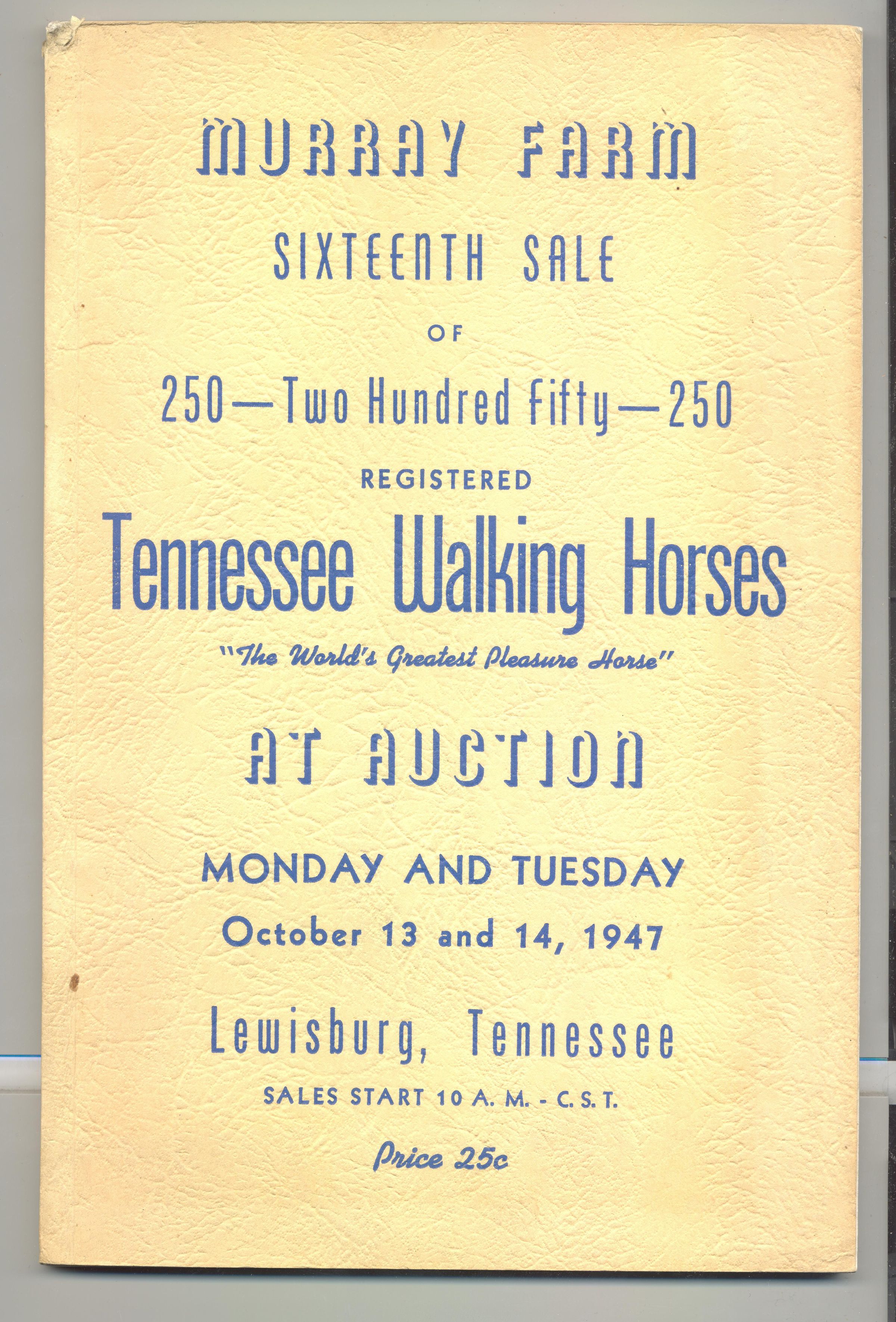 CAT, HORSE, 1947, TN. MURRAY FARM 16TH SALE OF 250 REGISTERED TN WALKING HORSES "THE WORLD'S GREATEST PLEASURE HORSE" AT AUCTION. B/W PHOTOS, 6 3/4" X 10 1/4" X 1/4"Created By