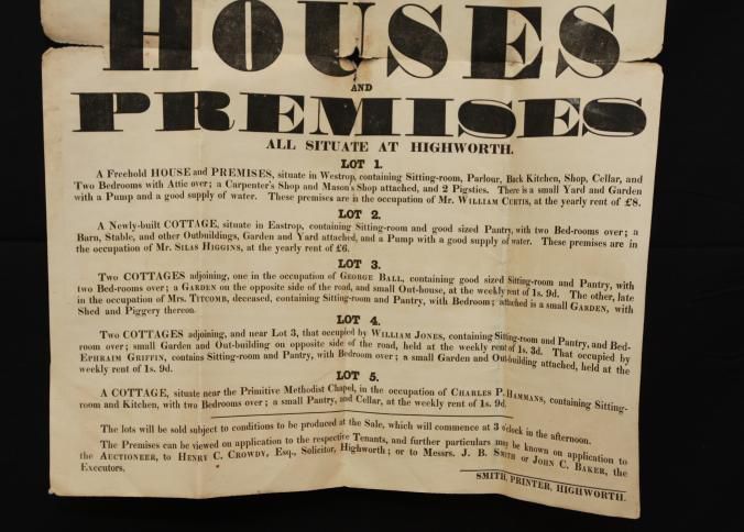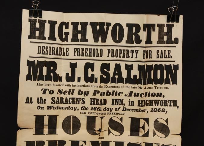 BROADSIDE & TERMS, FREEHOLD PROPERTY, HIGHWORTH. 1868. MR. J.C. SALMON, AUCTIONEER. 17" X 22 1/4"Created By