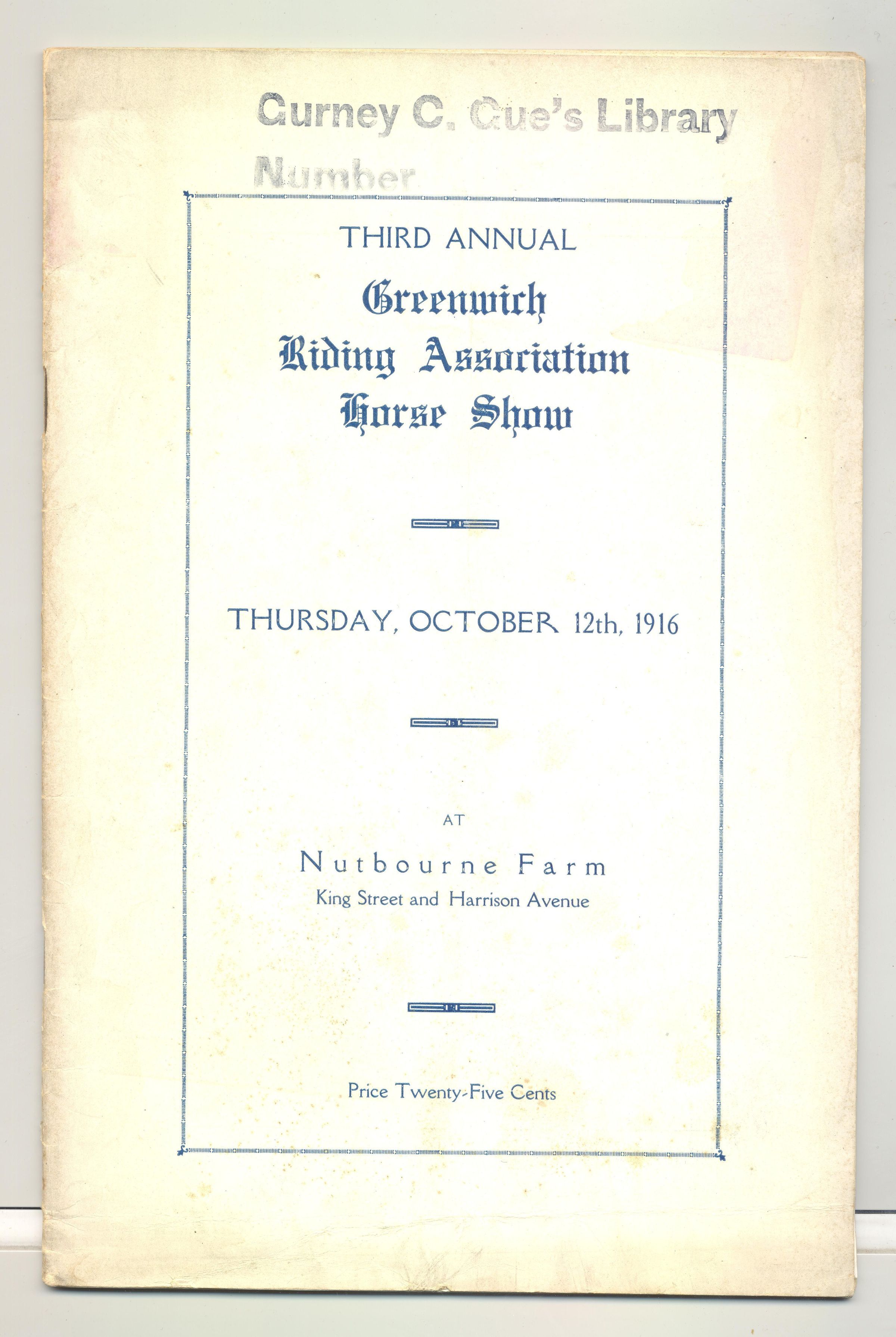 CAT, HORSES, 1916, CT. THIRD ANNUAL GREENWICH RIDING ASSOCIATION HORSE SHOW, 30 PP. 6" X 9"