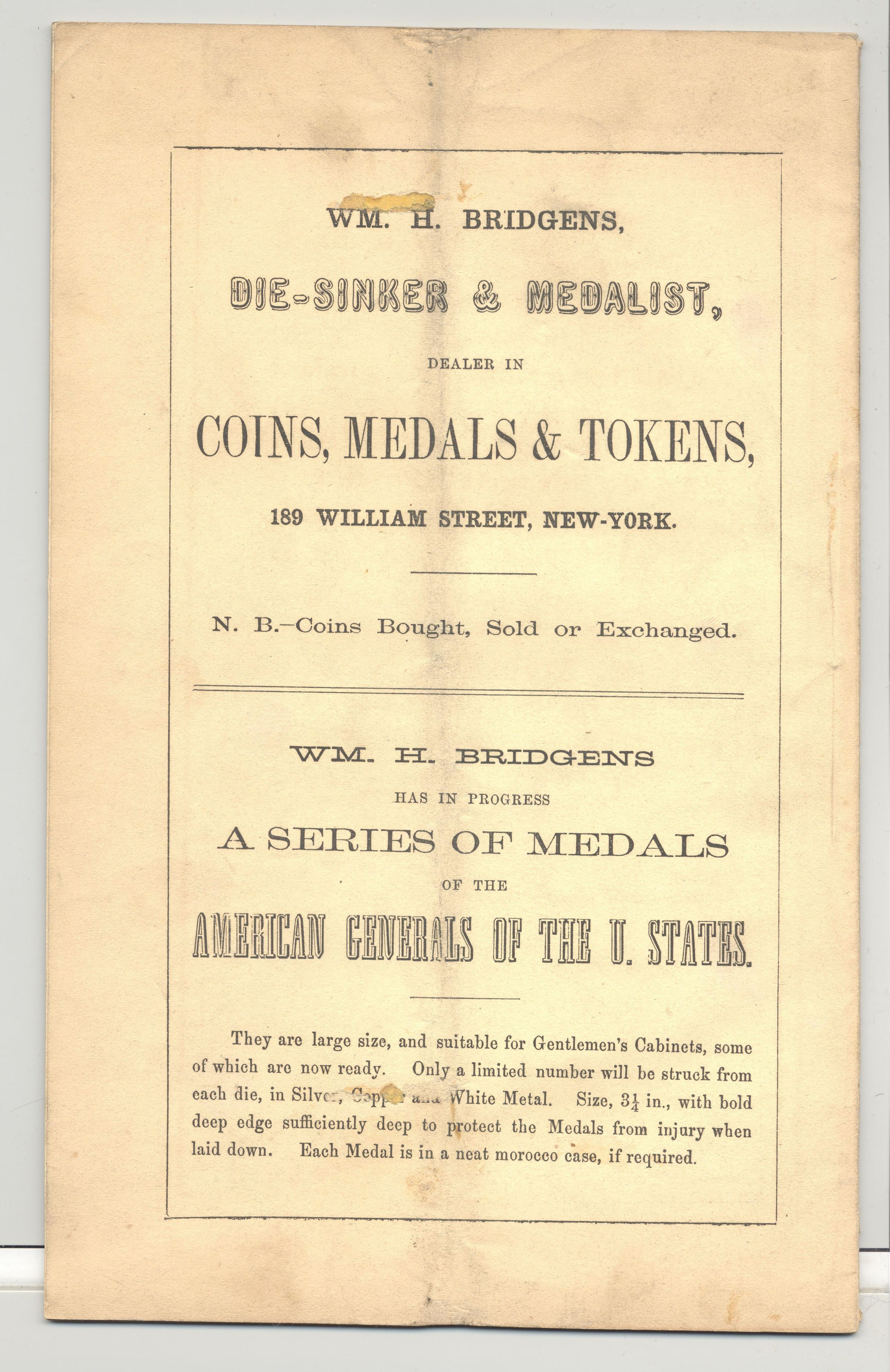 CAT, 1863, COINS, NY. BANGS, MERWIN & CO, AUCTIONEERS. 32 PP. 5 3/4" X 9"