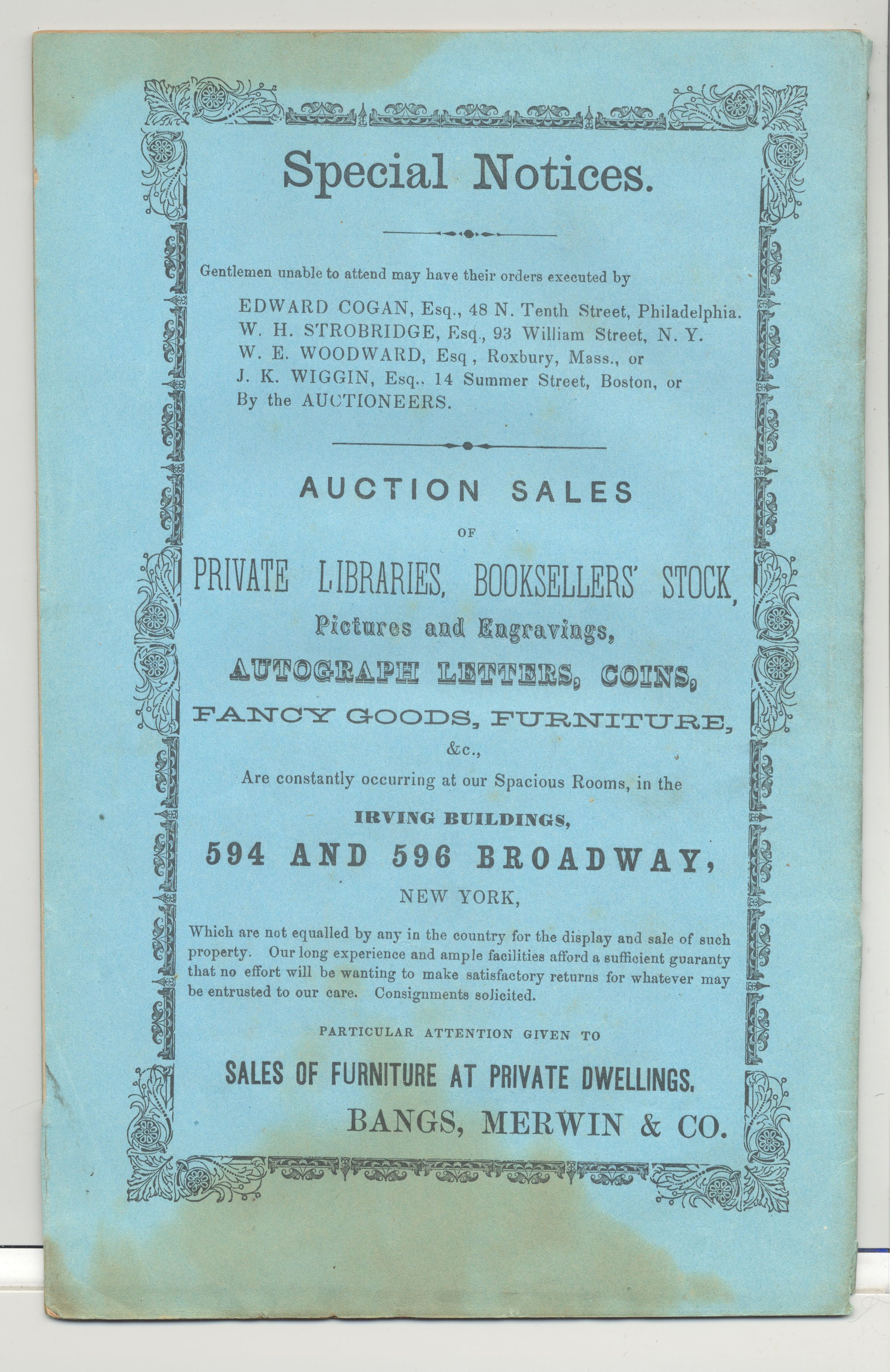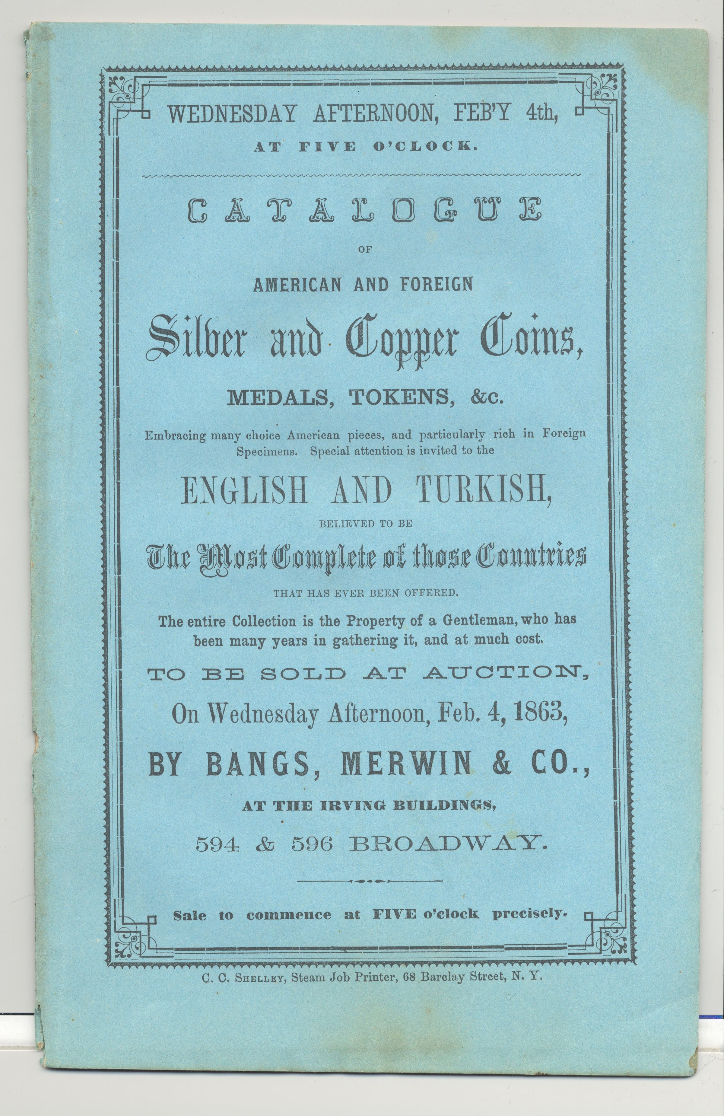 CAT, COINS, 1863, NY. BANGS, MERWIN & CO, AUCTIONEERS. 24 PP. 5 3/4" X 9"