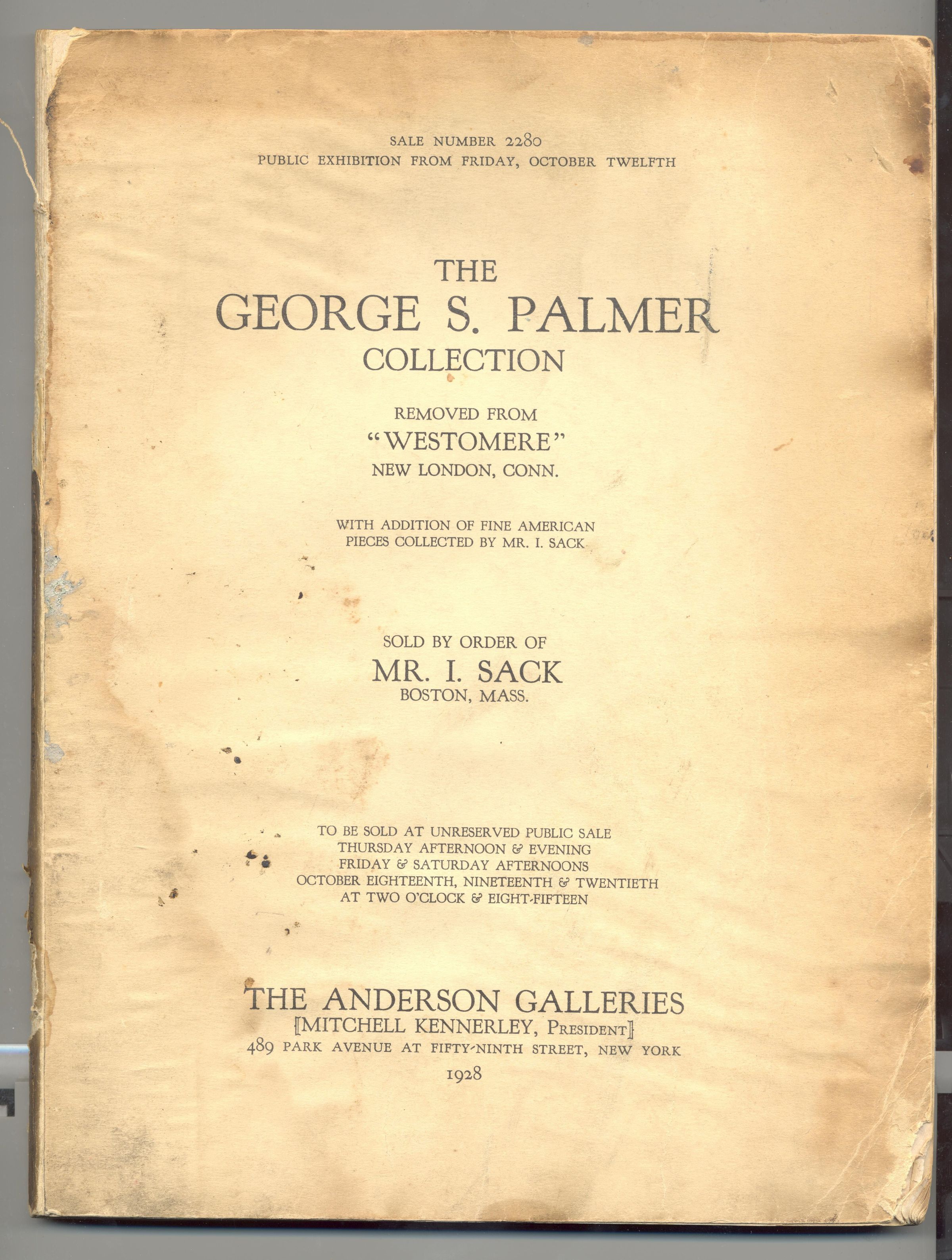 CAT, ART, 1928, NY. THE GEORGE S. PALMER COLLECTION, SALE NO. 2280. THE ANDERSON GALLERIES. ILLUS, 165 PP, 7 1/2" X 10"Created By
