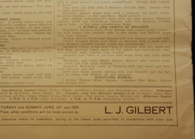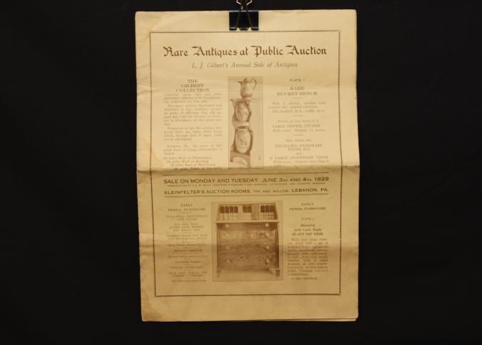 CAT, ANTIQUES, 1929, PA. L.J. GILBERT'S ANNUAL SALE OF ANTIQUES. KLEINFELTER'S AUCTION ROOMS. 12 PP ILLUS, 9 1/2" X 12 1/2"Created By