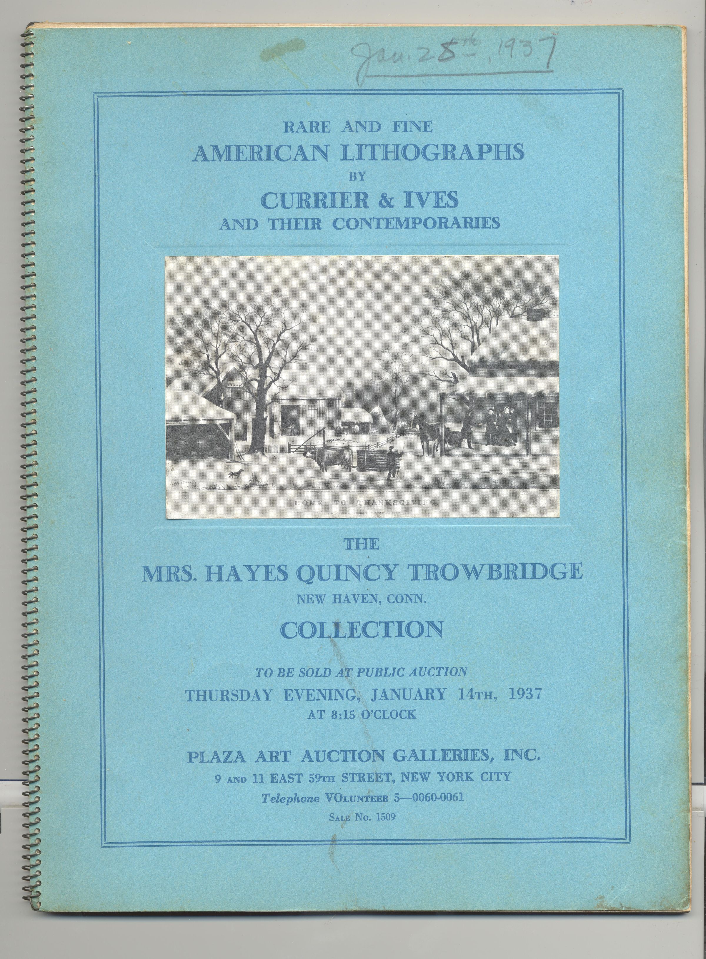 CAT, ART, 1937, NY. RARE AND FINE AMERICAN LITHOGRAPHS BY CURRIER AND IVES AND THEIR CONTEMPORARIES. PLAZA ART GALLERIES, INC. JANUARY 14, 1937. ILLUS, PRICED, 52 PP, SPIRAL BOUND. 7 1/2" X 10"Created By