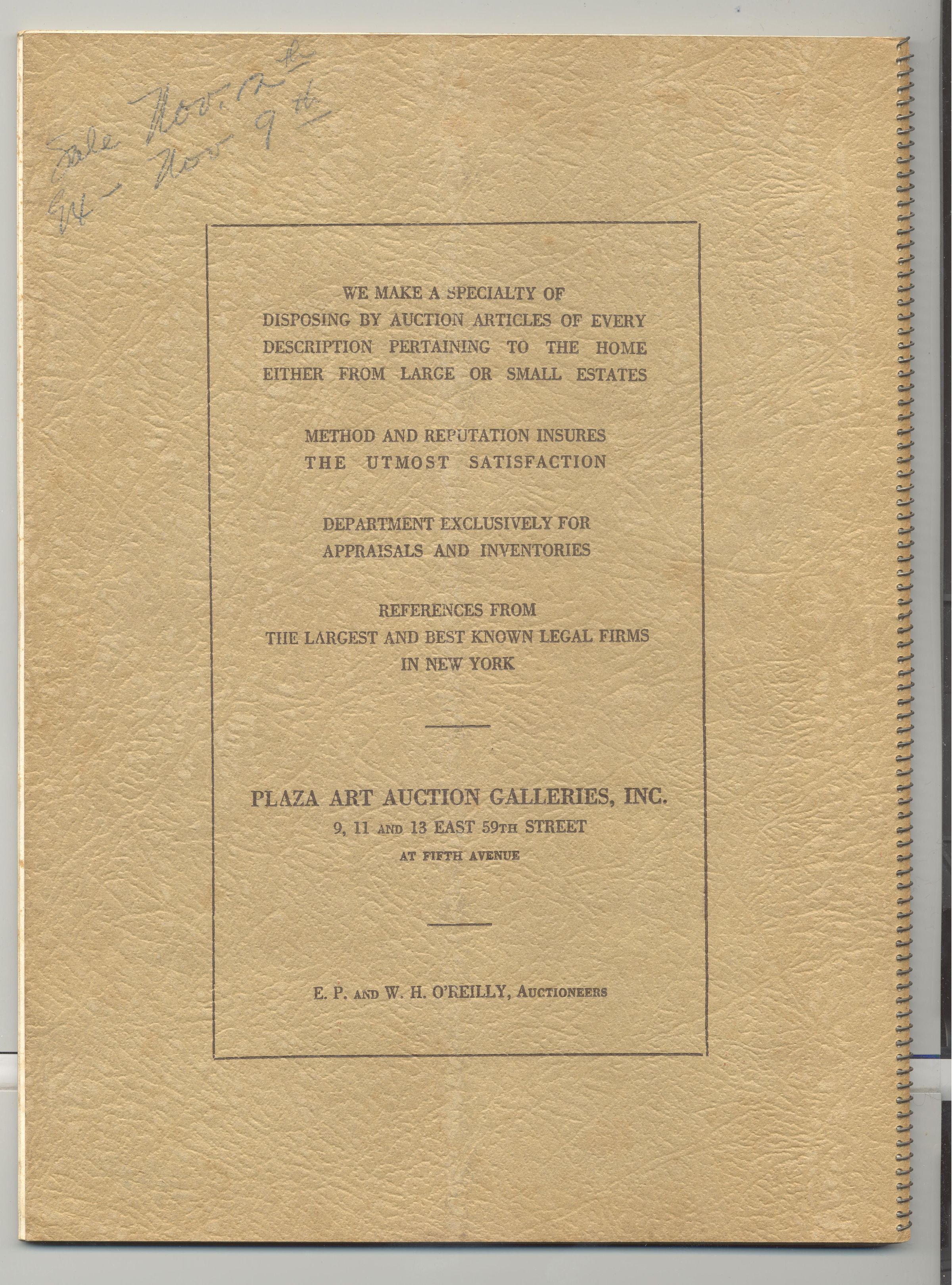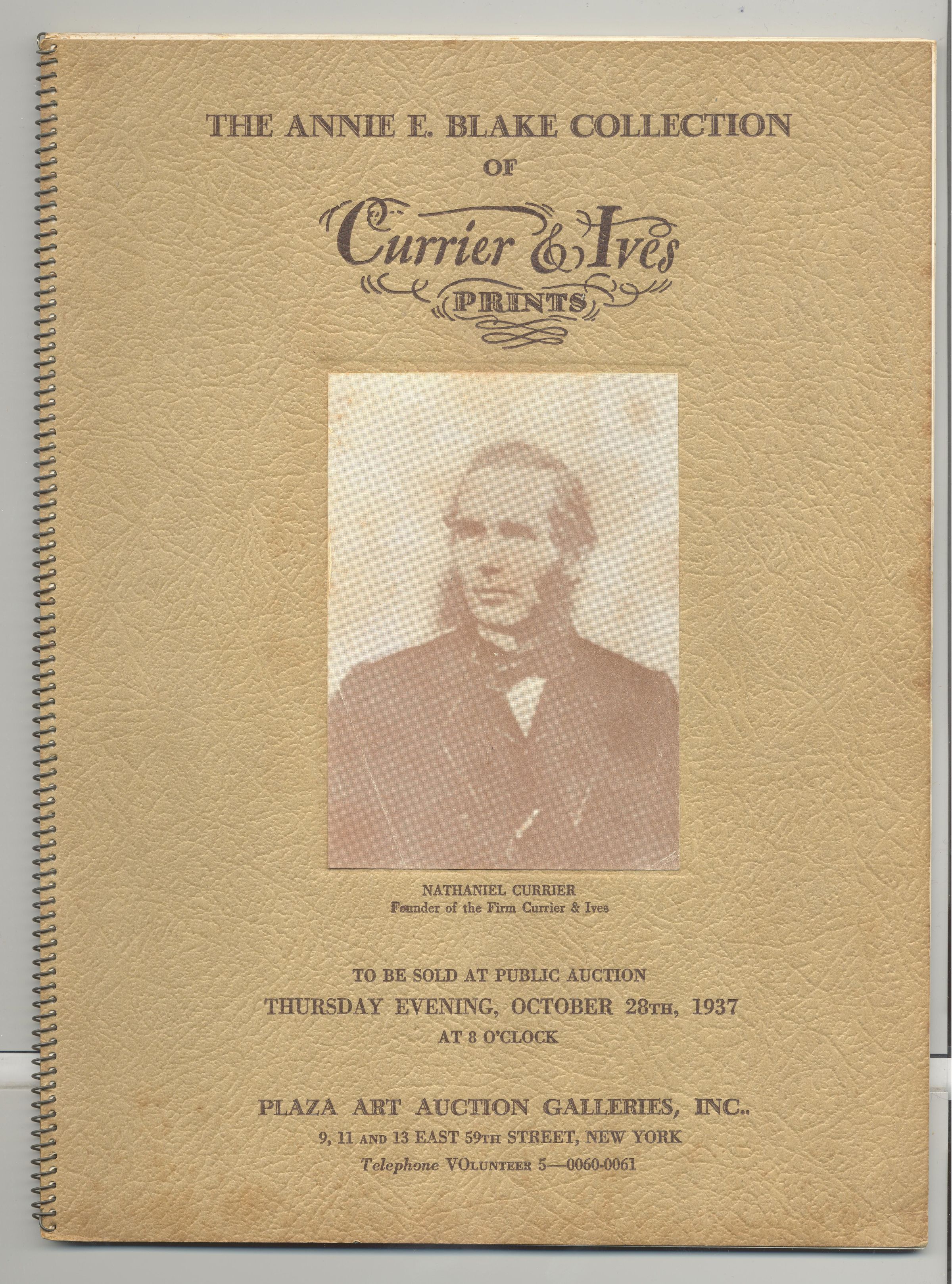 CAT, ART, 1937, NY. THE ANNIE BLAKE COLLECTION OF CURRIER & IVES PRINTS. PLAZA ART AUCTION GALLERIES, INC. OCTOBER 28, 1937. ILLUS, PRICED. 43 PP. SPIRAL BOUND, 7 1/2" X 10"Created By