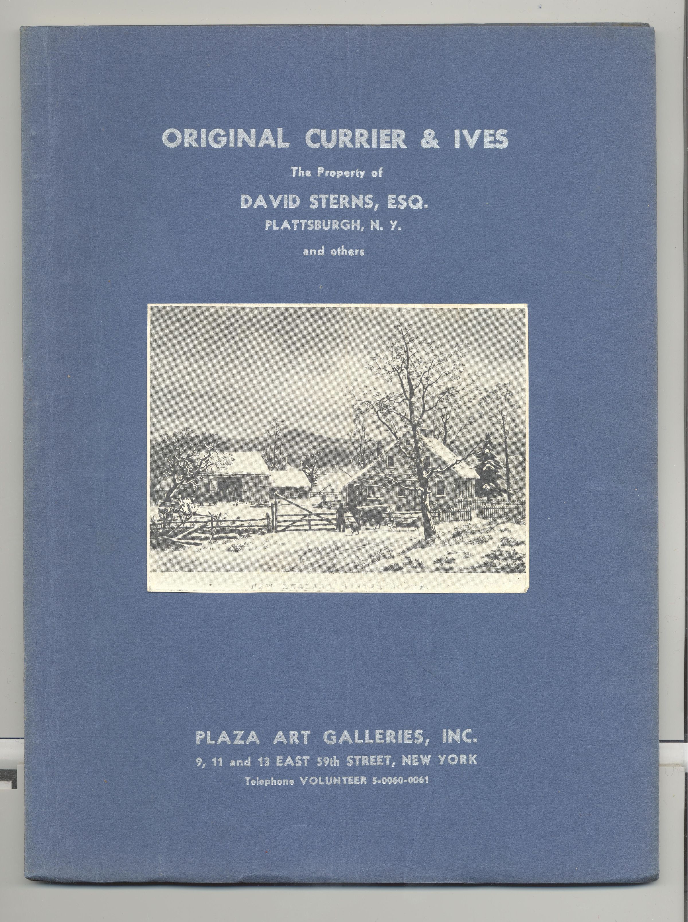 CAT, ART, 1938, NY. ORIGINAL CURRIER & IVES, THE PROPERTY OF DAVID STERNS, ESQ. AND OTHERS. PLAZA ART GALLERIES, INC. JAN 13, 1938. ILLUS, PRICED, 47 PP. 7 1/2" X 10"Created By