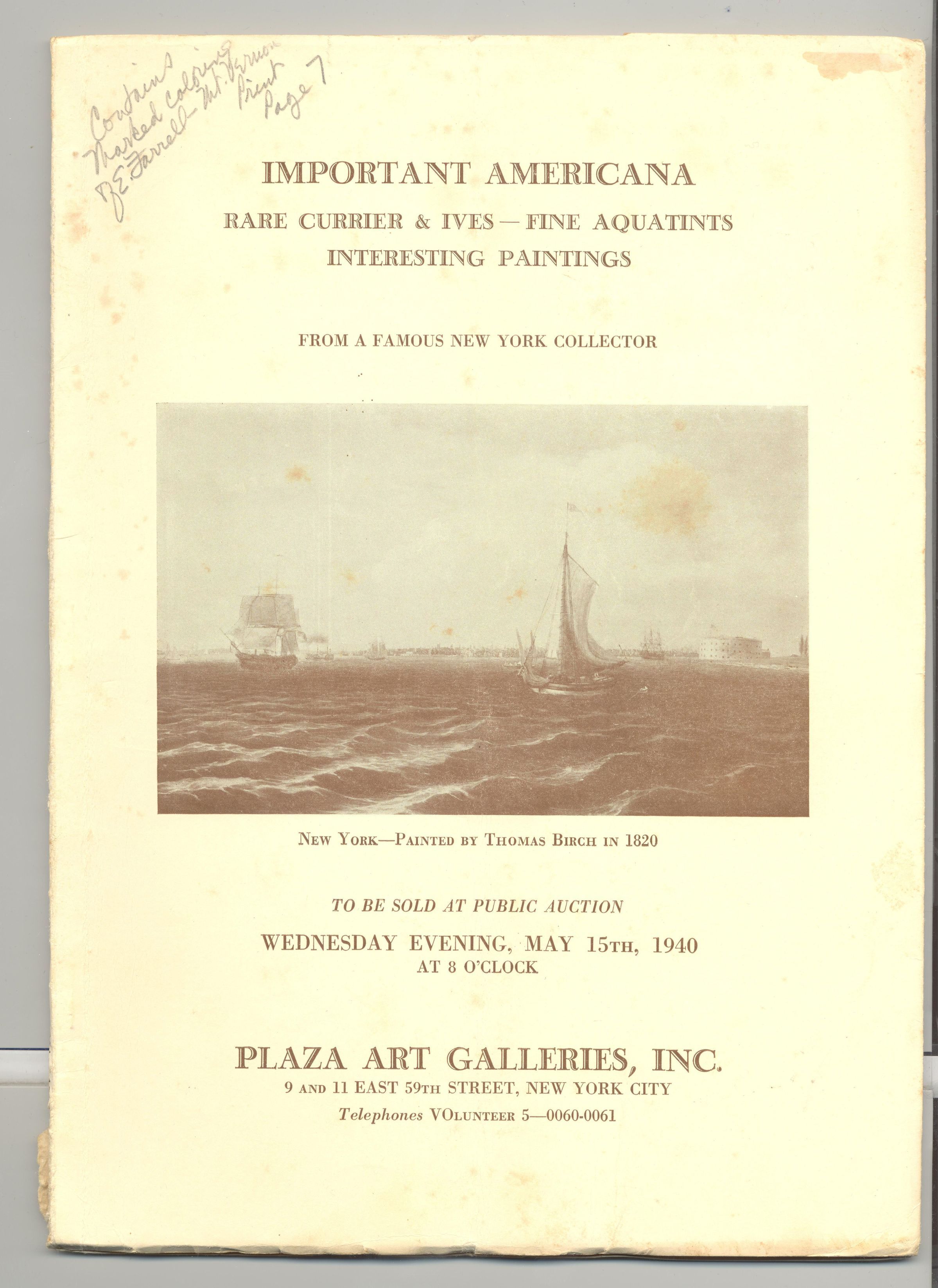 CAT, ART, 1940, NY. IMPORTANT AMERICANA, RARE CURRIER & IVES - FINE AQUATINTS, INTERESTING PAINTINGS. PLAZA ART GALLERIES, INC. MAY 15, 1940. ILLUS, PRICED, 48 PP. 7 1/2" X 10"Created By