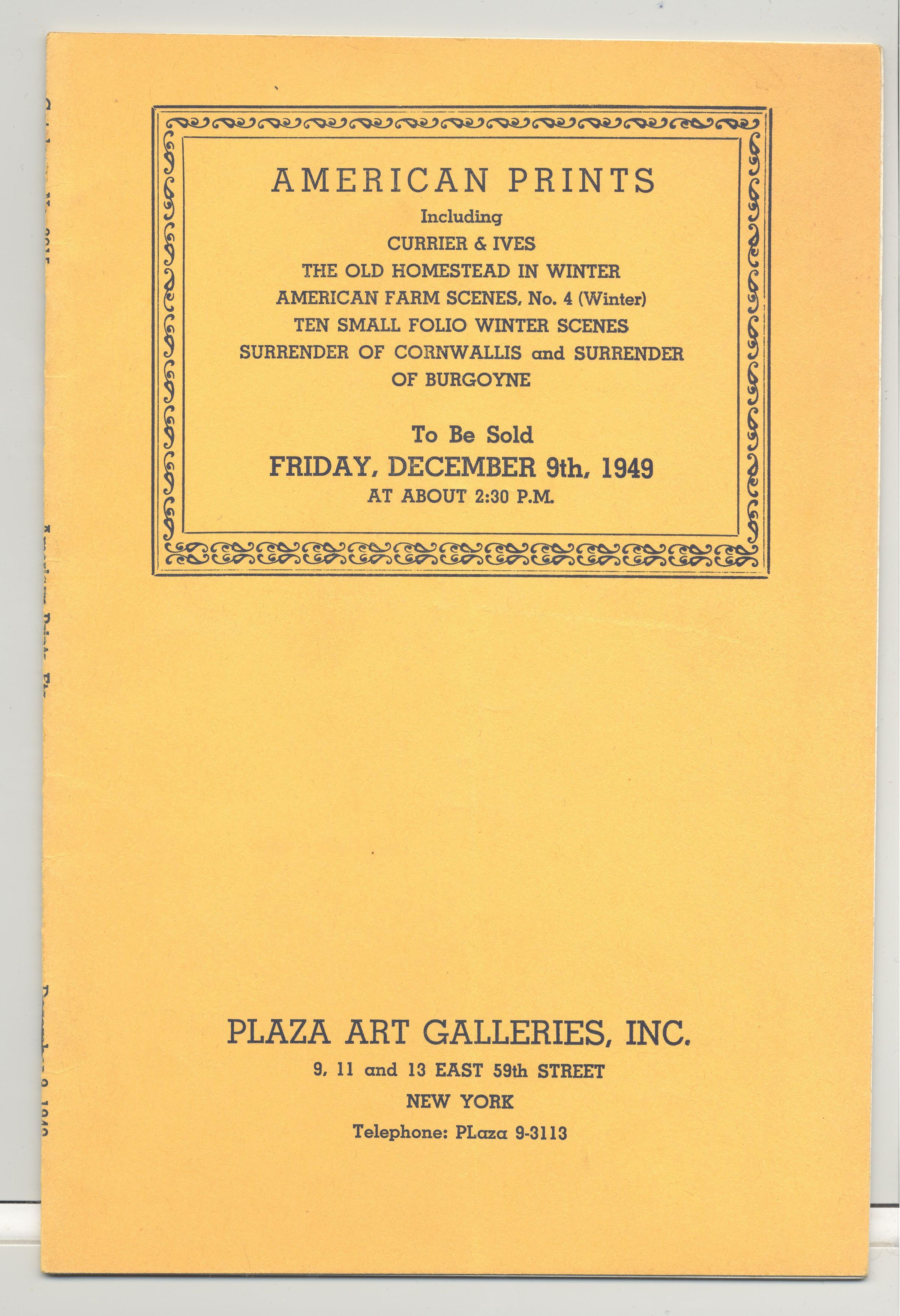 CAT, ART, 1949, NY. AMERICAN PRINTS INCLUDING CURRIER & IVES. PLAZA ART GALLERIES, INC. DEC 9, 1949. 20 PP. ILLUS, PRICED. 6" X 9"Created By