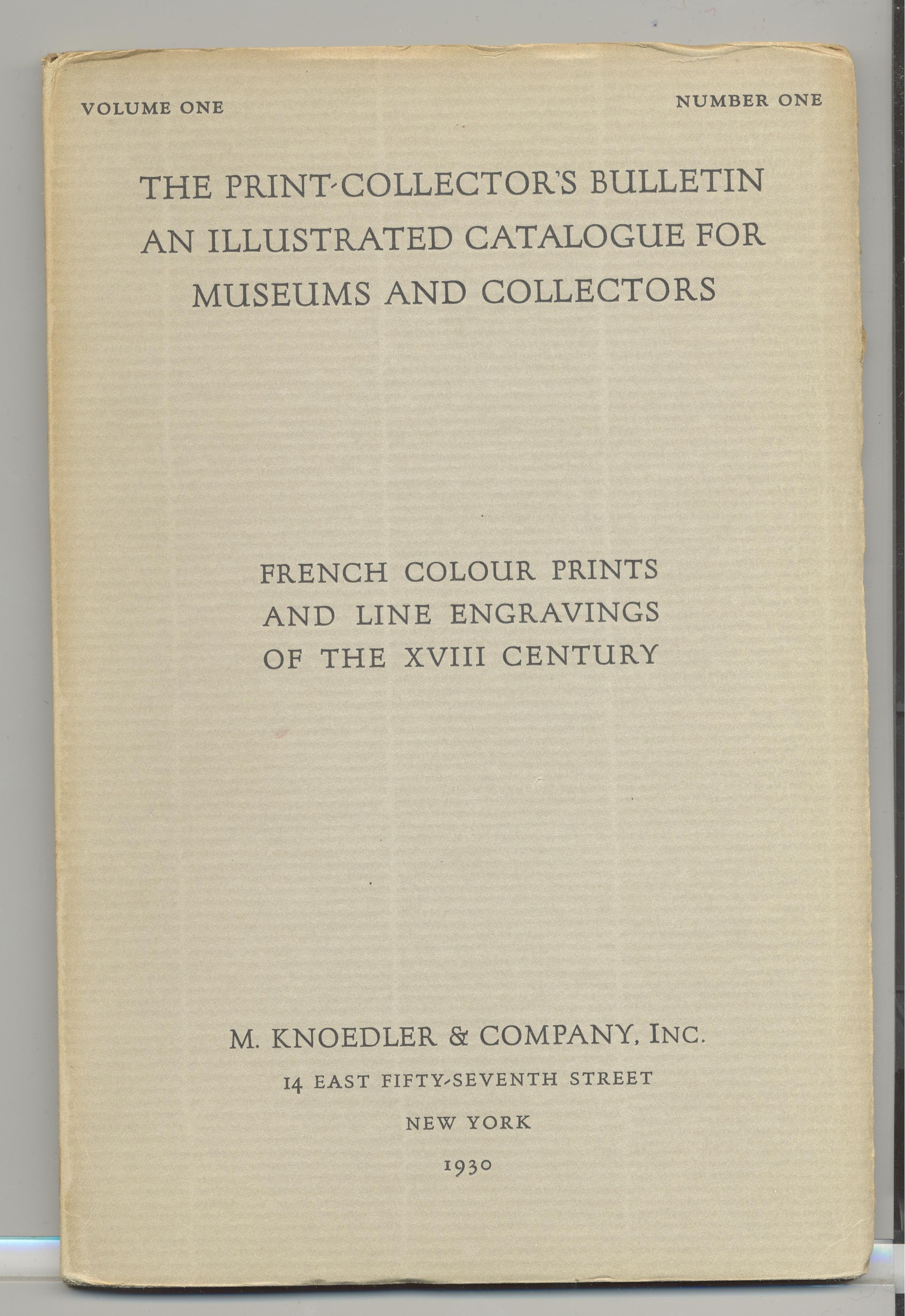 CAT, ART, 1930, NY. THE PRINT COLLECTOR'S BULLETIN, AN ILLUSTRATED CATALOGUE FOR MUSEUMS AND COLLECTORS. FRENCH COLOUR PRINTS AND LINE ENGRAVINGS OF THE XVIII CENTURY. M. KNOEDLER & CO, INC. VOL ONE, NO. ONE. COLOR & B/W ILLUS, 80 PP, 6" X 9"Created By
