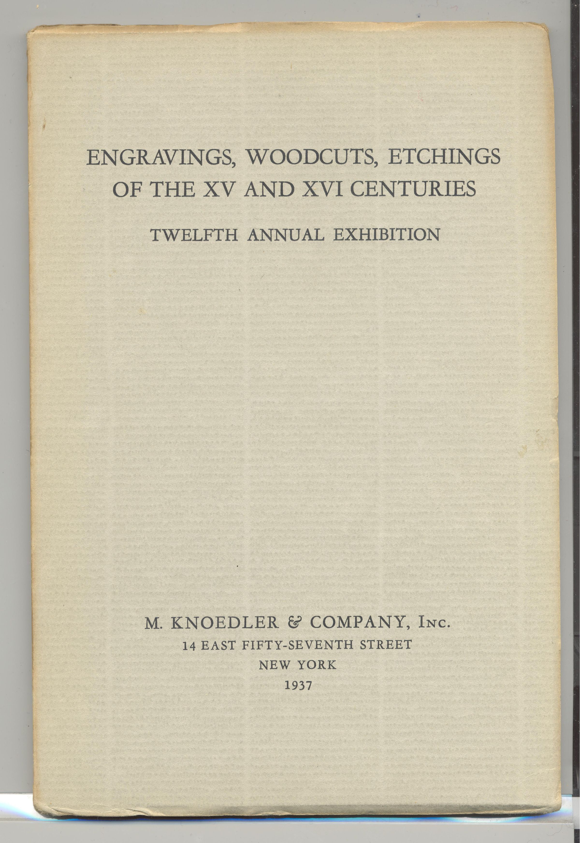 CAT, ART, 1937, NY. ENGRAVINGS, WOODCUTS, ETCHINGS OF THE XV AND XVI CENTURIES. 12TH ANNUAL EXHIBITION. M. KNOEDLER & CO, INC. 75 PP, ILLUS. 6" X 9"Created By