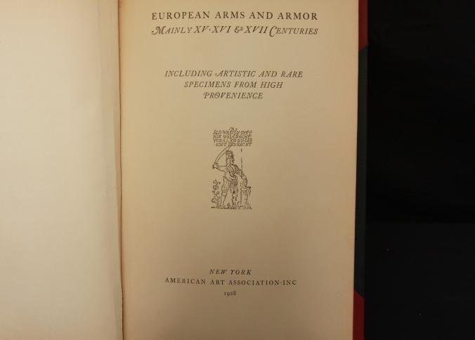 CAT, ARMOR & ARMS, 1928, NY. MAINLY EUROPEAN XV-XVII CENTURY, AMERICAN ART ASSOCIATION. 107 PP WITH B/W PHOTO ILLUS. HARDCOVER, 8" X 11"Created By