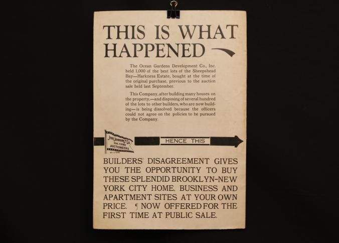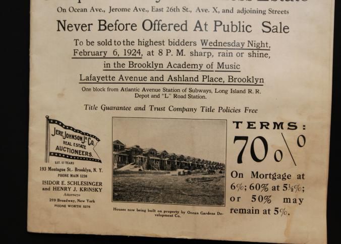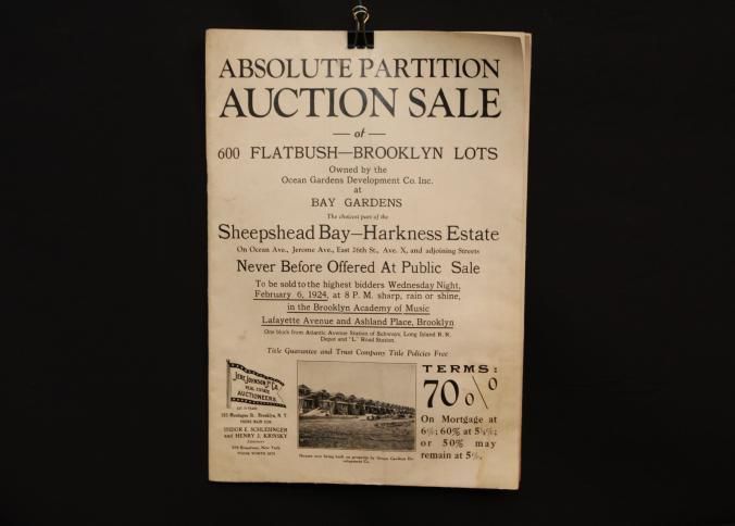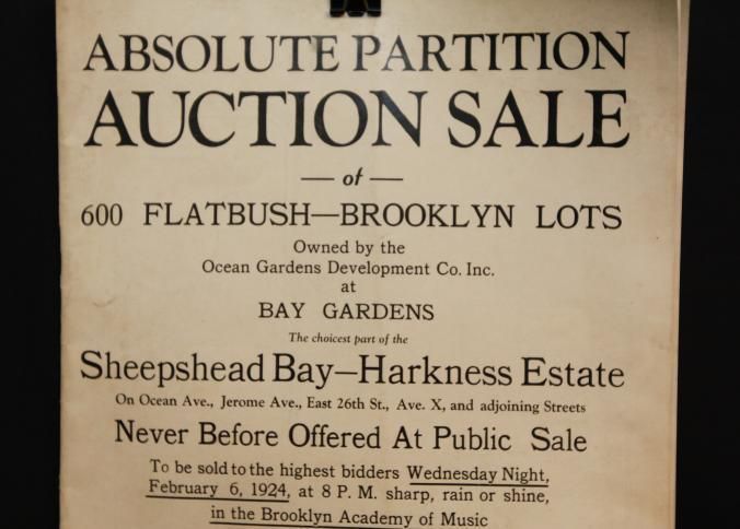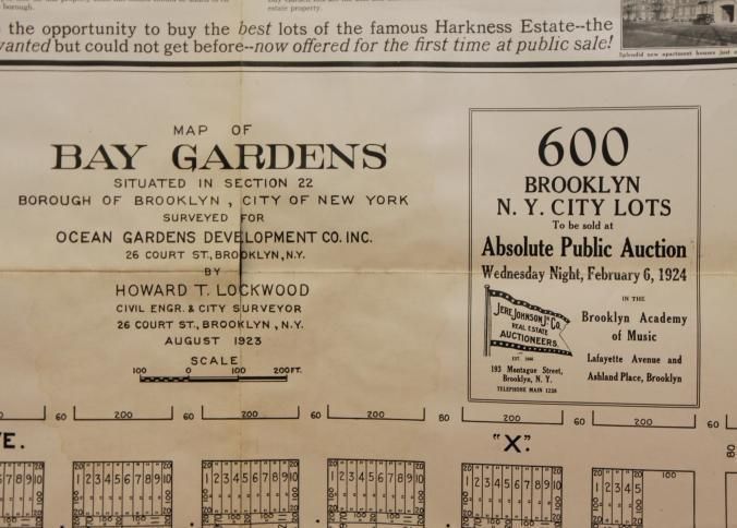 CAT, REAL ESTATE, 1924, NY. ABSOLUTE PARTITION AUCTION SALE OF 600 FLATBUSH-BROOKLYN LOTS. JERE. JOHNSON & CO. AUCTIONEERS. MAP OPENS OUT. 9" X 12" FOLDED.Created By