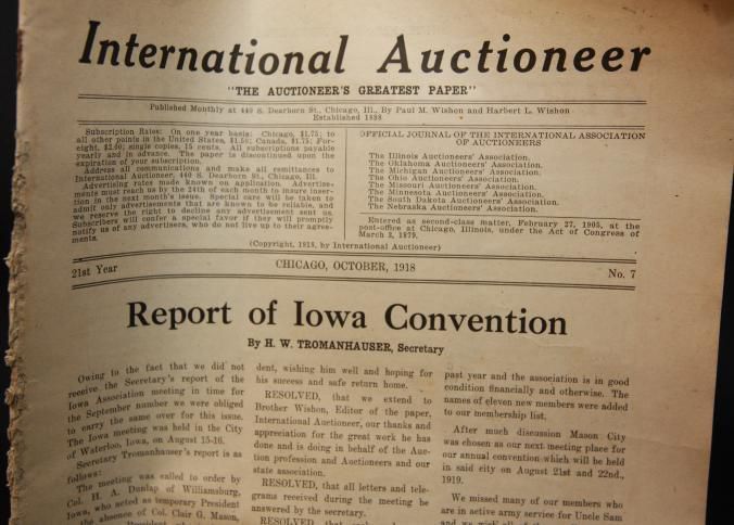 MAGAZINE, INTERNATIONAL AUCTIONEER. CHICAGO, OCTOBER 1918. 21ST YEAR, NO. 7. 31 PP ILLUS. 9" X 12"Created By