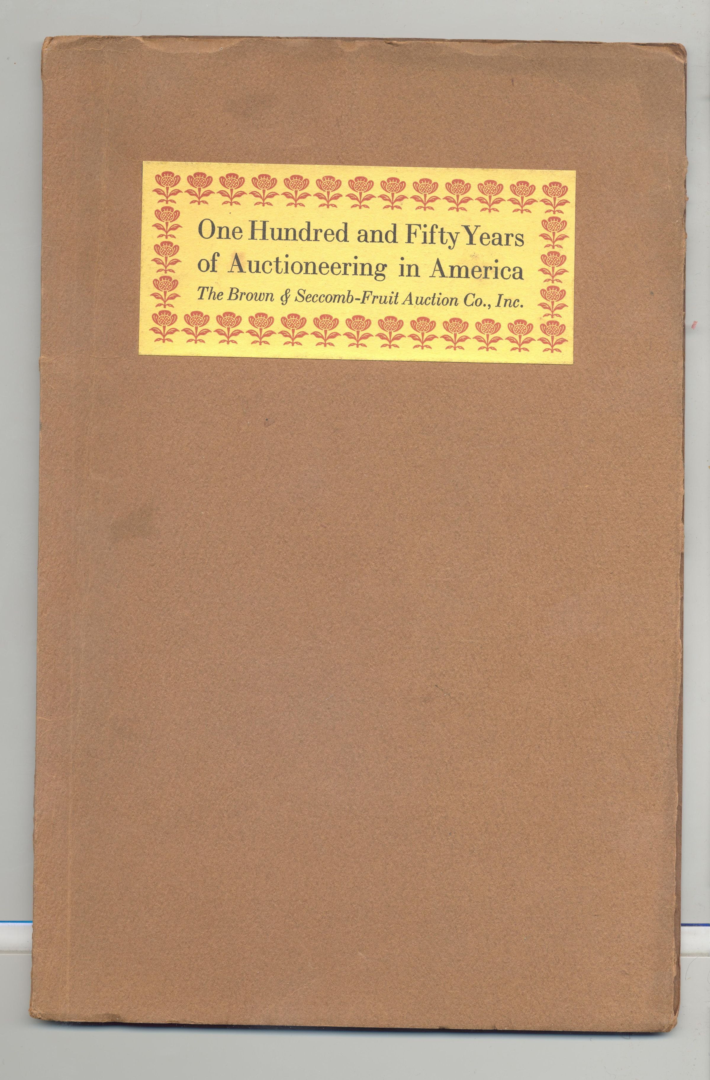 BKLT, 150 YEARS OF AUCTIONEERING IN AMERICA, THE STORY OF BROWN & SECCOMB FRUIT AUCTION CO, INC. NY, 1948. ILLUS, 27 PP. 6 1/4" X 9 1/2"Created By