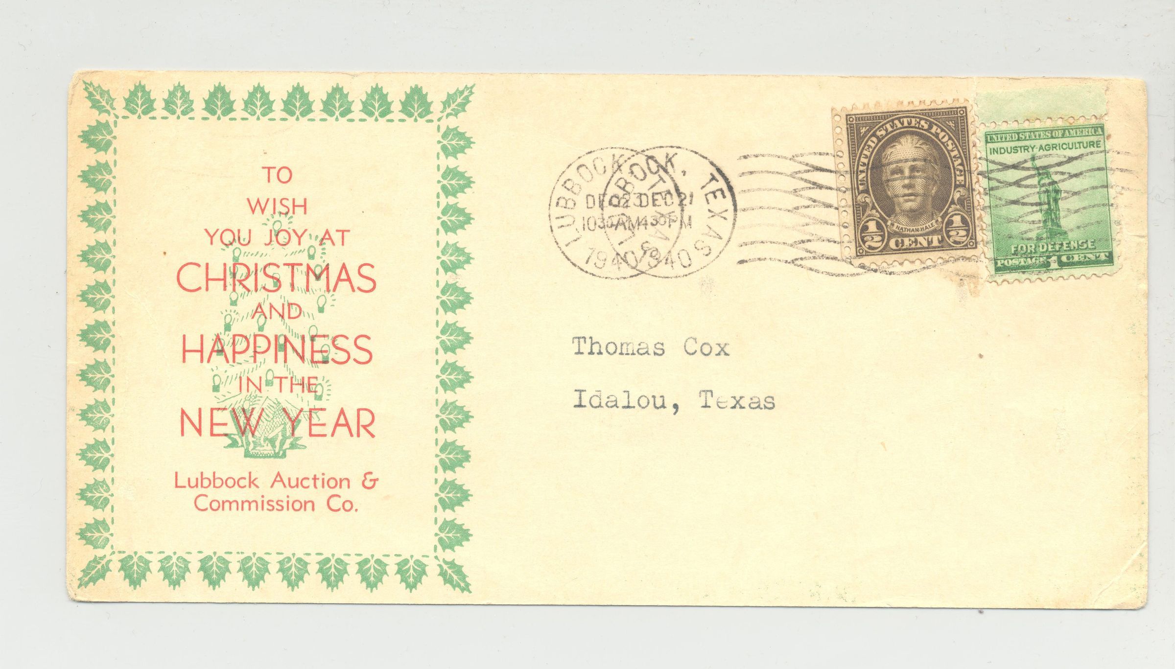 PSCD, ADVERTISING, LUBBOCK AUCTION AND COMMISSION CO, TX. 7" X 3 1/2"