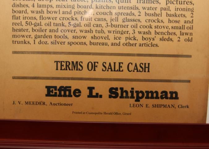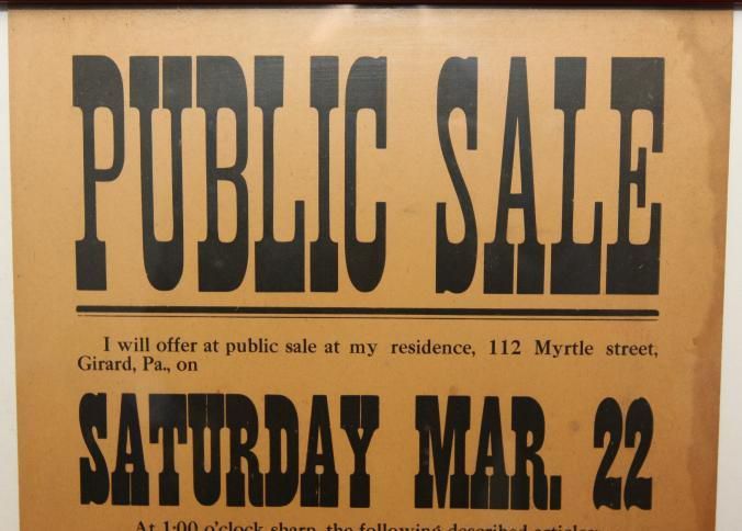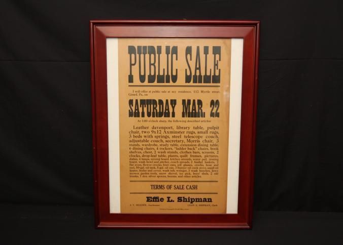 FR BROADSIDE, PERSONAL PROPERTY, PA. PUBLIC SALE, J.V. MEEDER, AUCTIONEER. 19 1/4" X 23 1/2"
