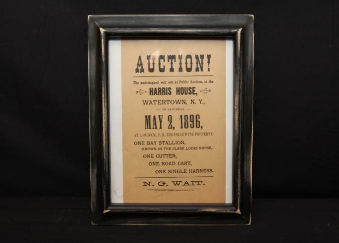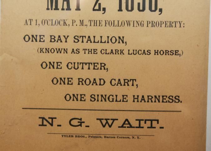 FR BROADSIDE, HORSE, 1896, NY. AUCTION! N.G. WAIT, AUCTIONEER. 10" X 12"