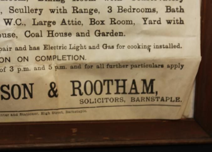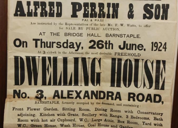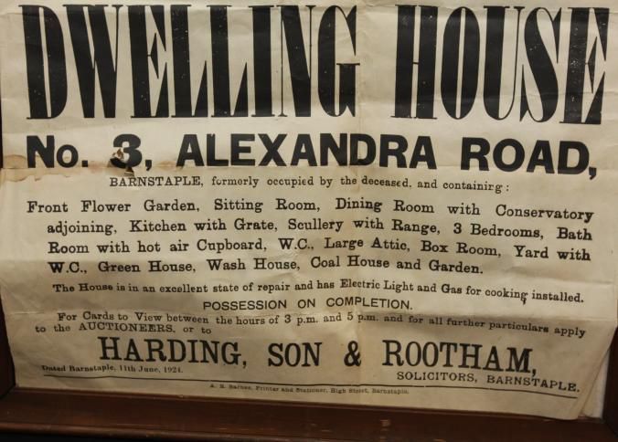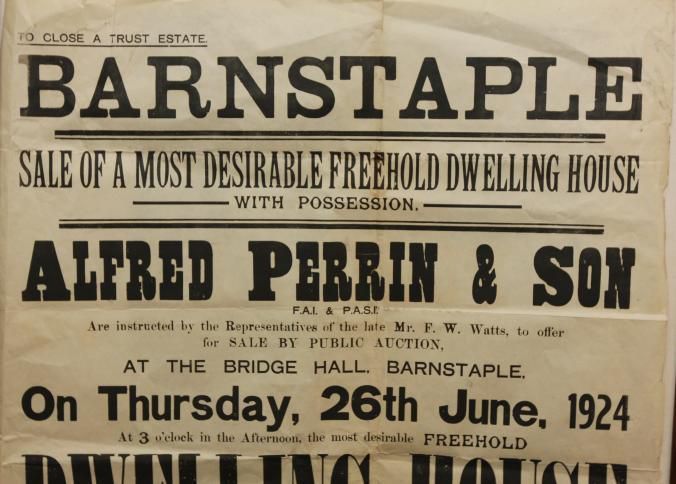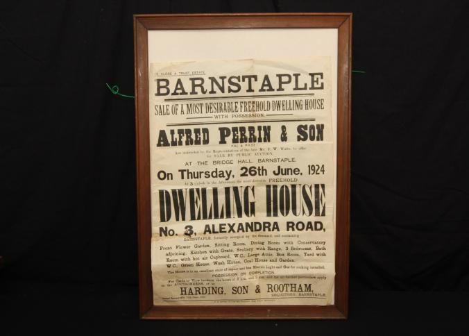 FR BROADSIDE, REAL ESTATE, 1924, BARNSTAPLE. "SALE OF A MOST DESIRABLE FREEHOLD DWELLING HOUSE WITH POSSESSION. ALFRED PERRIN & SON" AUCTIONEERS. 22 3/4" X 30 3/4"Created By