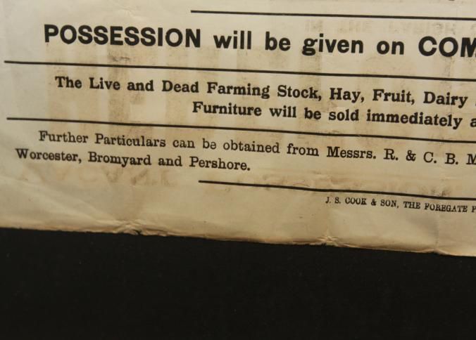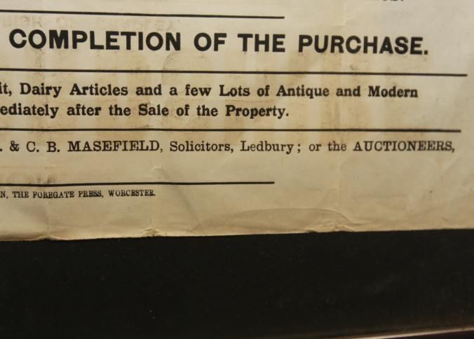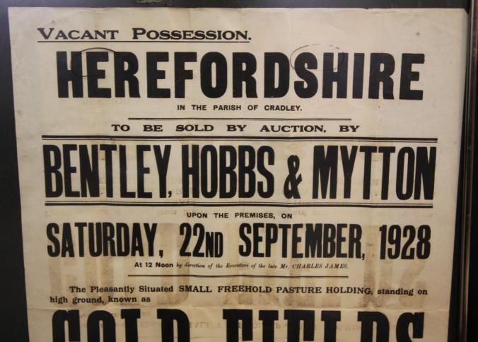 FR BROADSIDE, REAL ESTATE, 1928, HEREFORDSHIRE, ENGLAND. "VACANT POSSESSION. TO BE SOLD BY AUCTION BY BENTLEY, HOBBS & MYTTON" 20" X 28"Created By