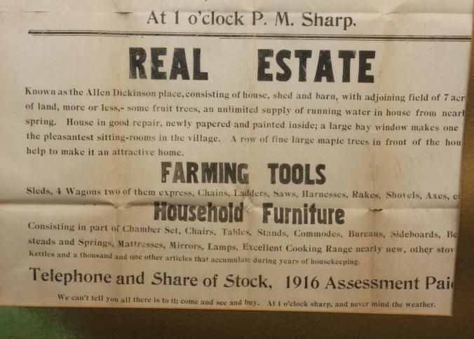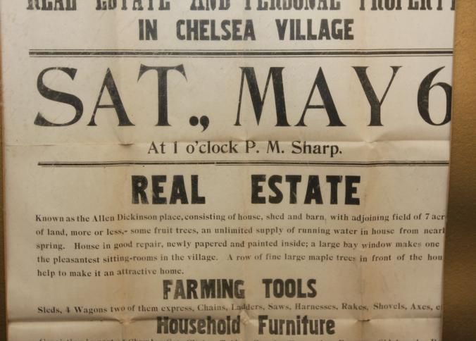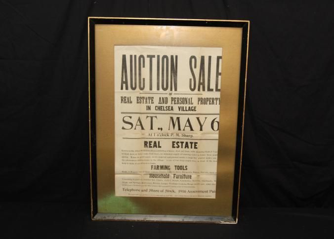 FR BROADSIDE, REAL ESTATE, 1916, VT. AUCTION SALE OF REAL ESTATE & PERSONAL PROPERTY IN CHELSEA VILLAGE. F.J. ACKERMAN, AUCTIONEER. 23" X 29"Created By