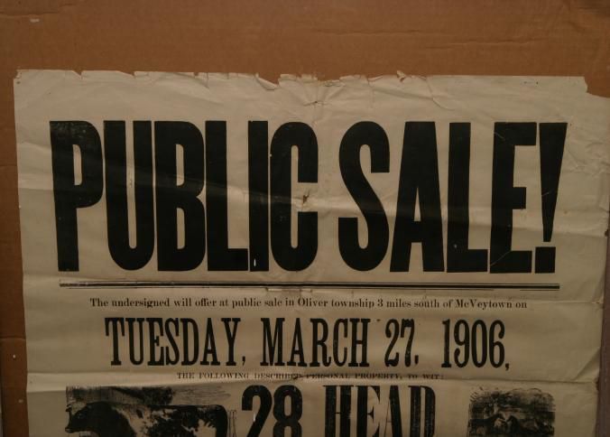 FR BROADSIDE, FARM, 1906. "PUBLIC SALE! 28 HEAD OF LIVESTOCK, FARMING MACHINERY, HOUSEHOLD GOODS" ILLUS, 25 3/4" X 31 3/4"Created By