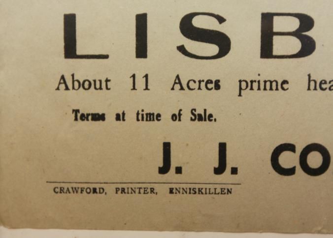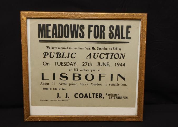 FR BROADSIDE, REAL ESTATE, 1944, MEADOWS FOR SALE AT LISBOFIN. J.J. COALTER, AUCTIONEER. 13" X 11"Created By
