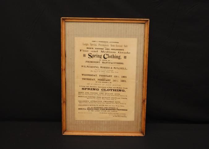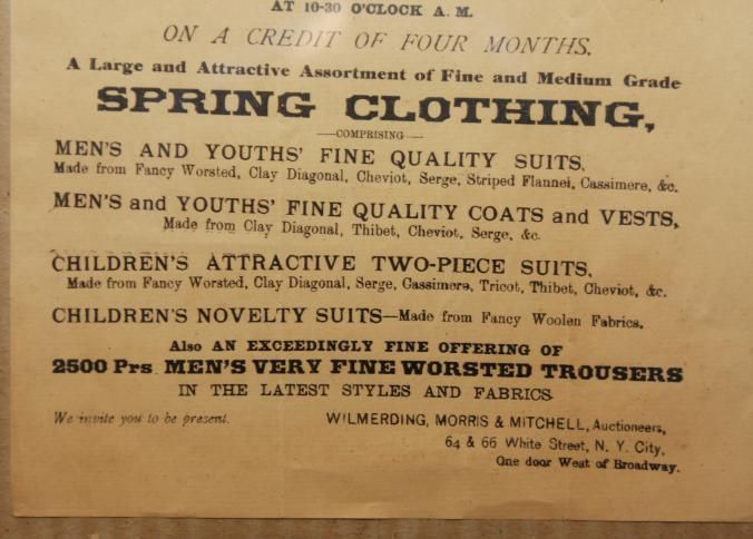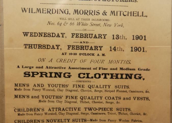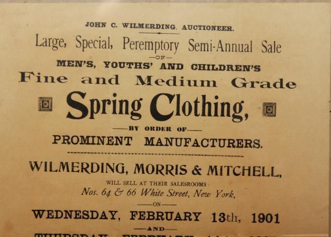 FR BROADSIDE, 1901, CLOTHING, NY. JOHN C. WILMERDING, AUCTIONEER. WILMERDING, MORRIS & MITCHELL. 11 3/4" X 14 1/2"Created By