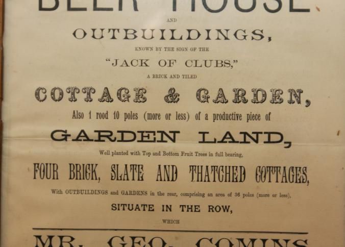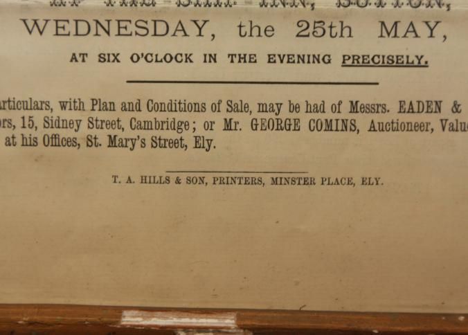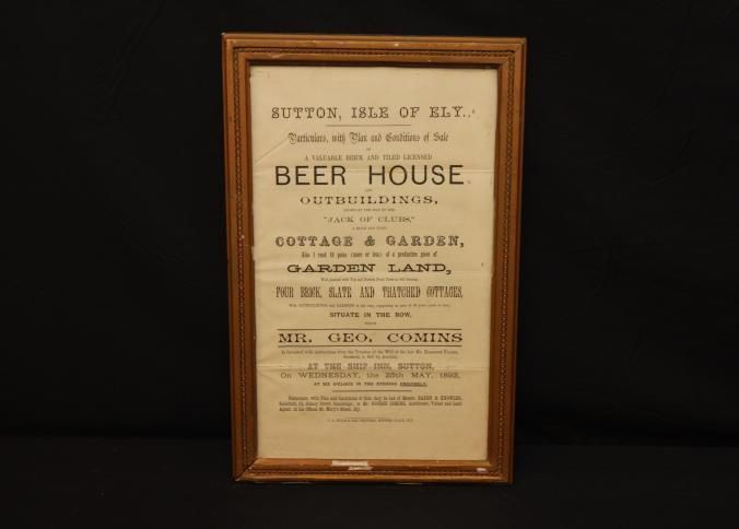 FR BROADSIDE, 1892, REAL ESTATE, SUTTON. PARTICULARS WITH PLAN AND CONDITIONS OF SALE, BEER HOUSE AND OUTBUILDINGS. MR. GEO. COMINS, AUCTIONEER. 10 1/4" X 15 1/4"Created By