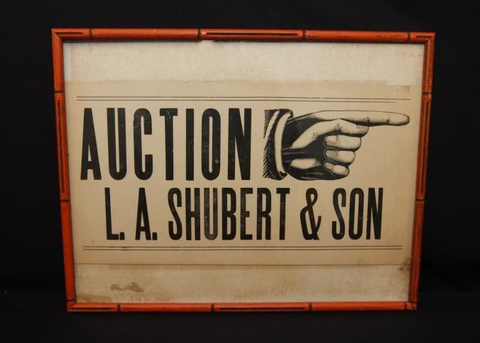 FR SIGN, AUCTION L.A. SHUBERT & SON. 18" X 13"
