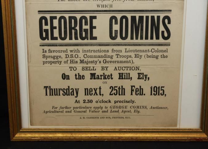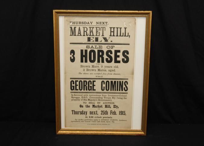 FR BROADSIDE, HORSE, 1915, ELY. THURSDAY NEXT, MARKET HILL. SALE OF 3 HORSES, GEORGE COMINS, AUCTIONEER. 15 1/4" X 19 1/4"Created By