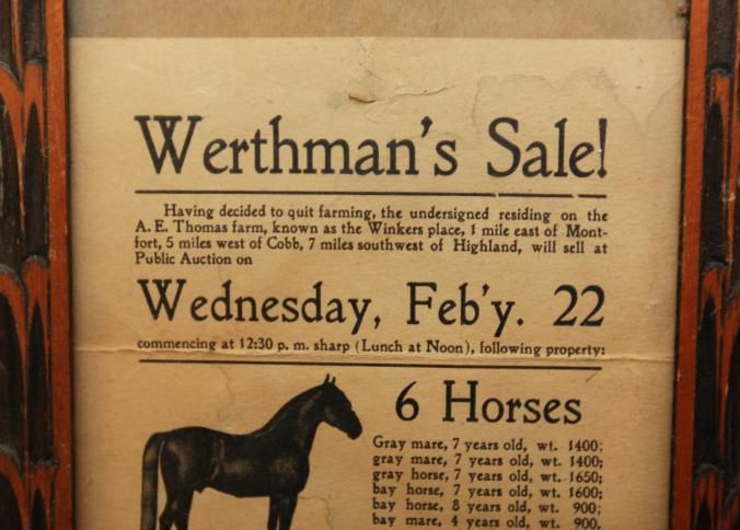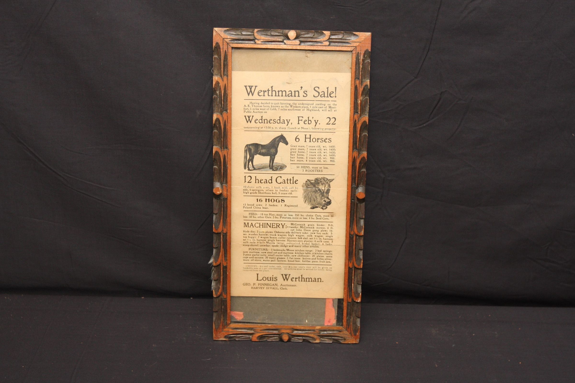 FR BROADSIDE, LIVESTOCK. WERTHMAN'S SALE! GEO. P. FINNEGAN, AUCTIONEER. 7 1/2" X 15 1/2"