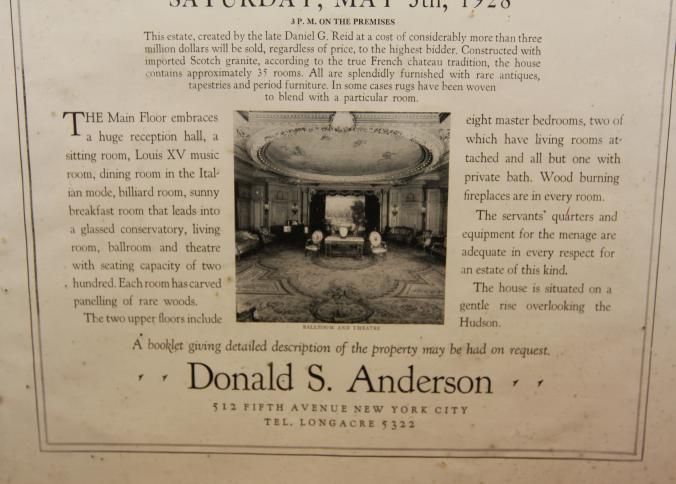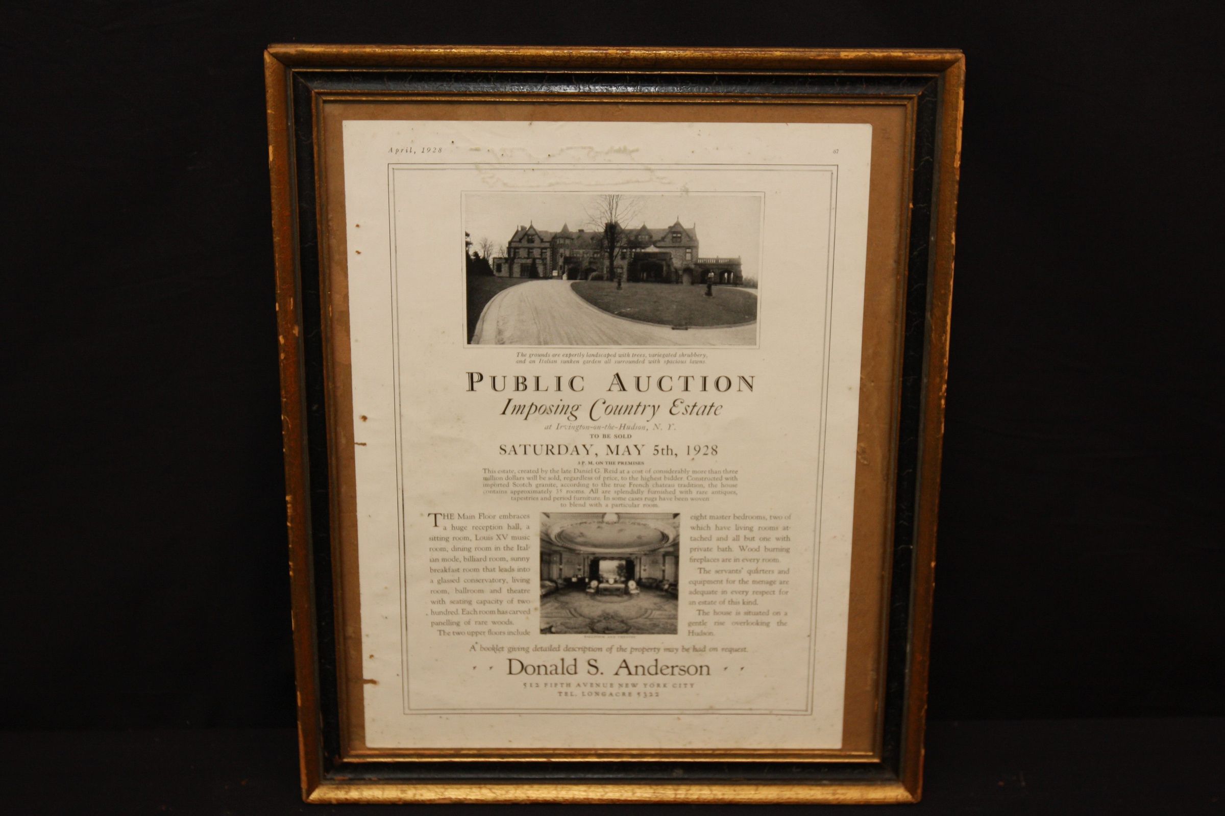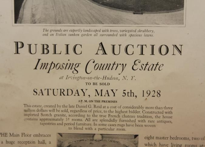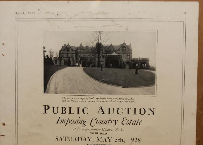 FR AD, REAL ESTATE, 1928, NY. PUBLIC AUCTION IMPOSING COUNTRY ESTATE AT IRVINGTON-ON-THE-HUDSON, NY. DONALD ANDERSON, AUCTIONEERS. 12 1/2" X 15"Created By