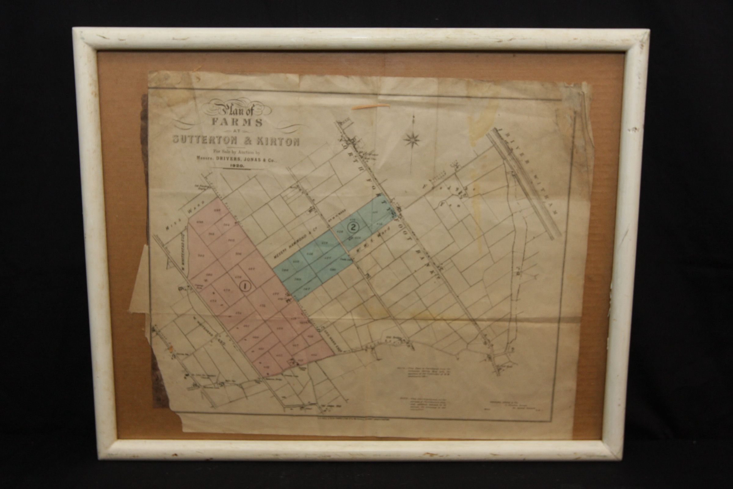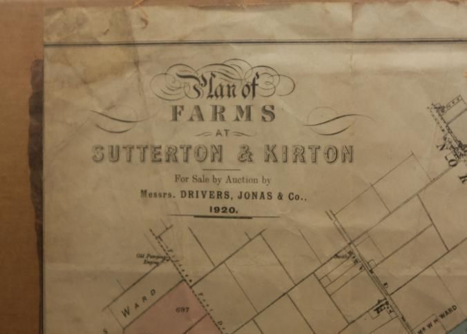 FR MAP, 1920. PLAN OF FARMS AT SUTTERTON & KIRTON FOR SALE BY AUCTION BY MESSRS DRIVERS, JONAS & CO. 20" X 16"Created By