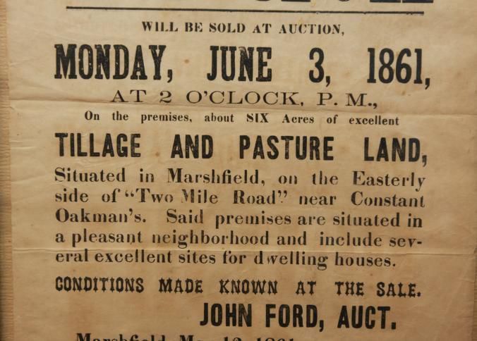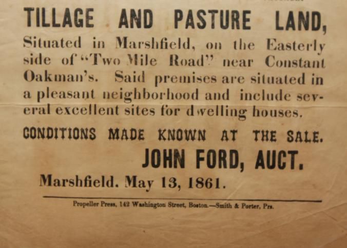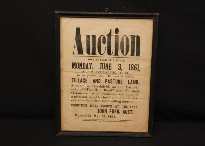 FR. 1861 BOSTON, MA. LAND AUCTION BROADSIDE. 9X12". 6 ACRES OF TILLAGE AND PASTURE LAND. GREAT EARLY CIVIL WAR PERIOD AUCTION AMERICANA.Created By