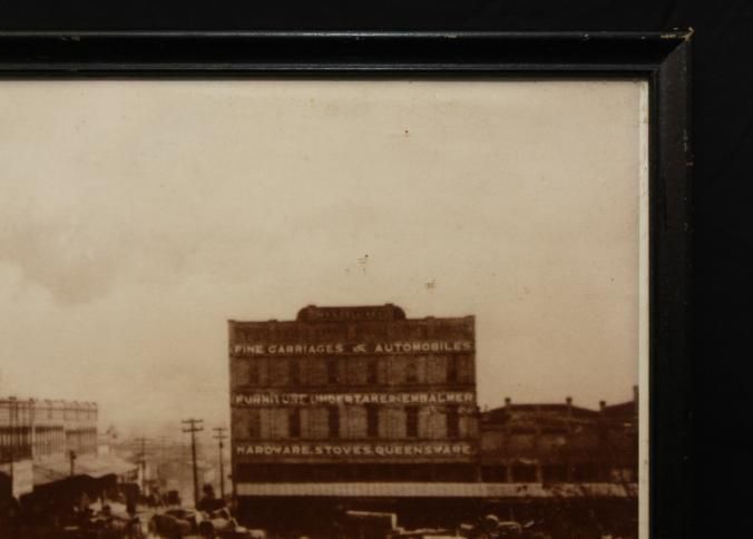 FR. BLOWN-UP PHOTO OF A STREET AUCTION SCENE. 10X13 1/2". THE PHOTO IS CONTEMORARY OF A C-1900 AUCTION SCENE IN THE CENTER OF TOWN. LARGE CROWD WITH MANY HORSEDRAWN VEHICLES.Created By