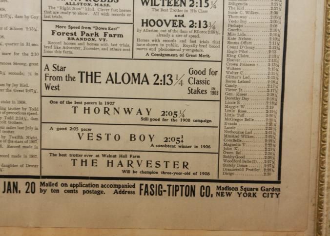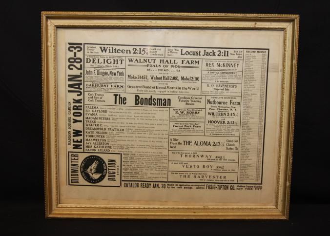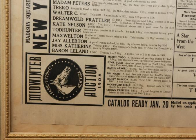 FR. 1908 FULL ADV. "MID-WINTER FASIG-TIPTON NY HORSE AUCTION. 11X15". THE AUCTION WAS HELD AT MADISON SQUARE GARDEN JAN 28-31. CATALOGS WERE TO BE READY JAN 20TH. THIS WAS A MAJOR EVENT WITH HUNDREDS OF GREAT HORSES. FANTASTIC DETAILED LISTING.Created By