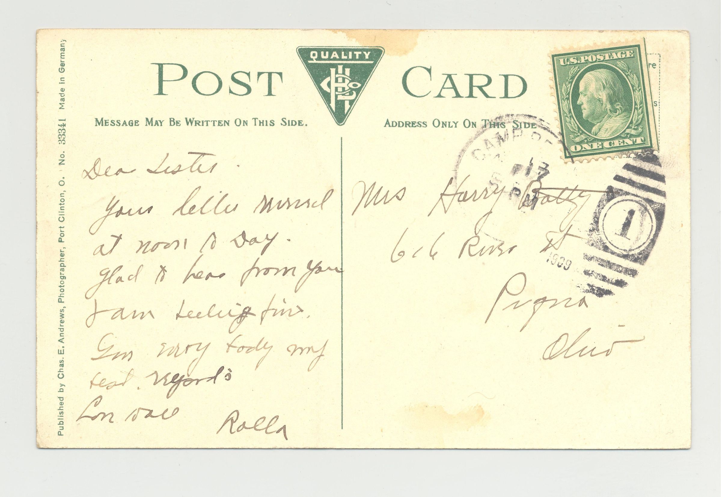 PSTCD, 1909, STREET AUCTION, OR. "PORT CLINTON, O. AUCTION BLOCK"