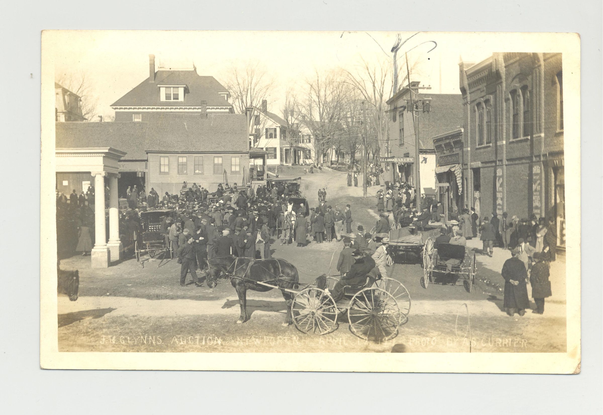 PSTCD, 1911, STREET AUCTION, NH. "J.H. GLYNNS AUCTION" PHOTO OF HORSES, CARRIAGES, CROWD