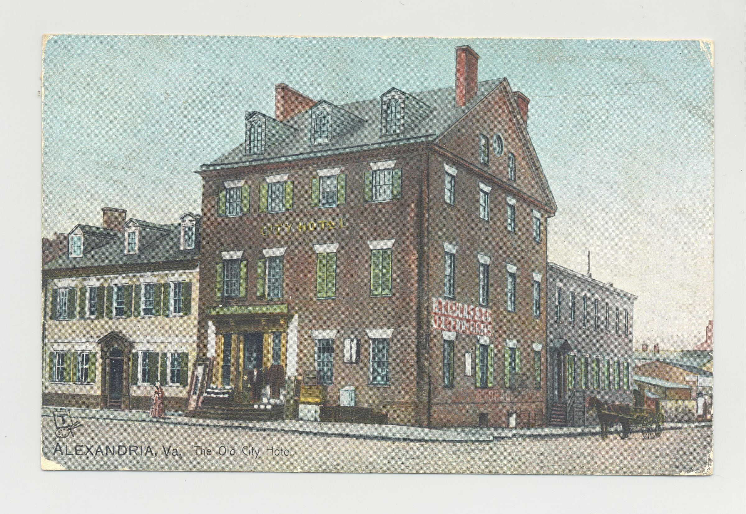 PSTCD, 1906, AUCTION HALL, VA. "THE OLD CITY HOTEL" SIGN ON BLDG READS "R.T. LUCAS AND CO. AUCTIONEERS"Created By