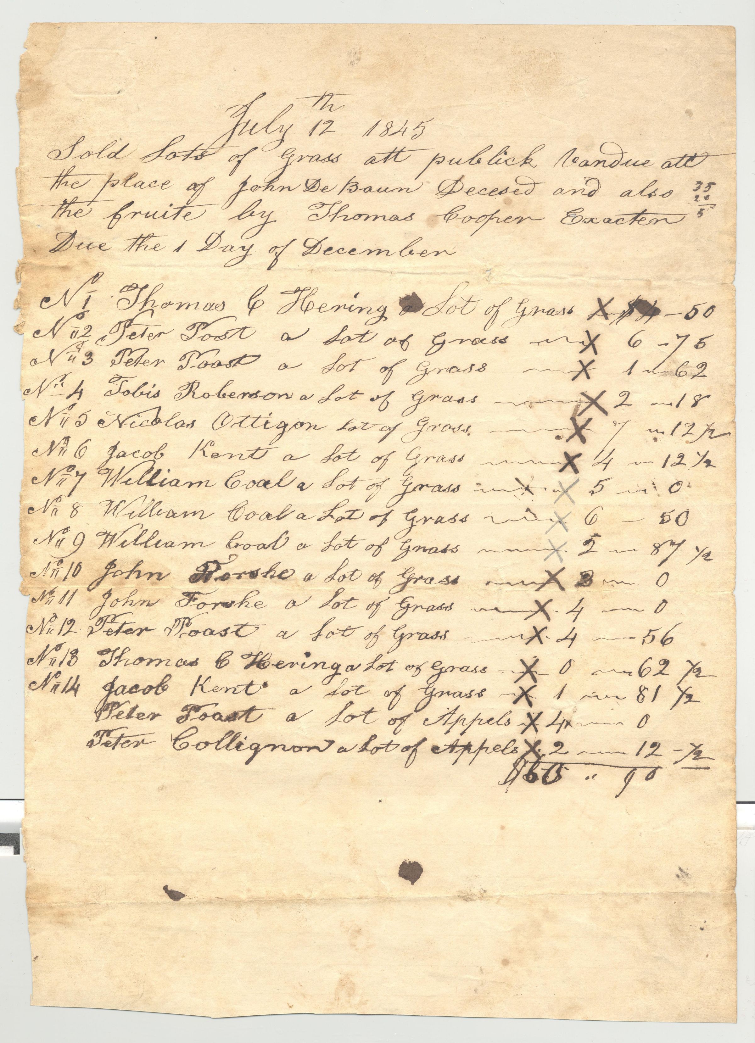RECORD OF LOTS, 1845, GRASS, FRUIT.