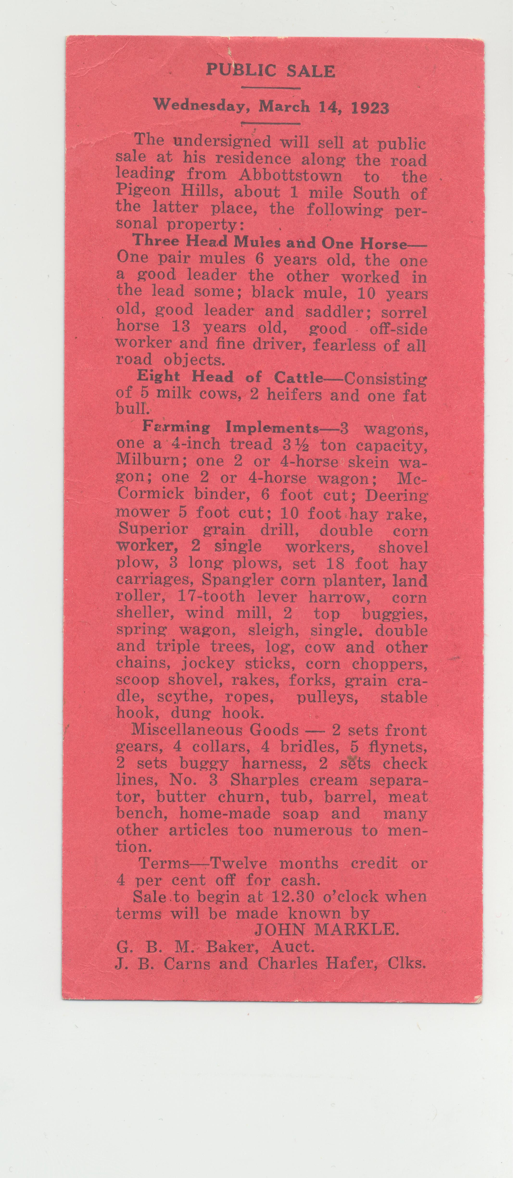 ADV, FARM, 1923. G.B.M BAKER, AUCT.