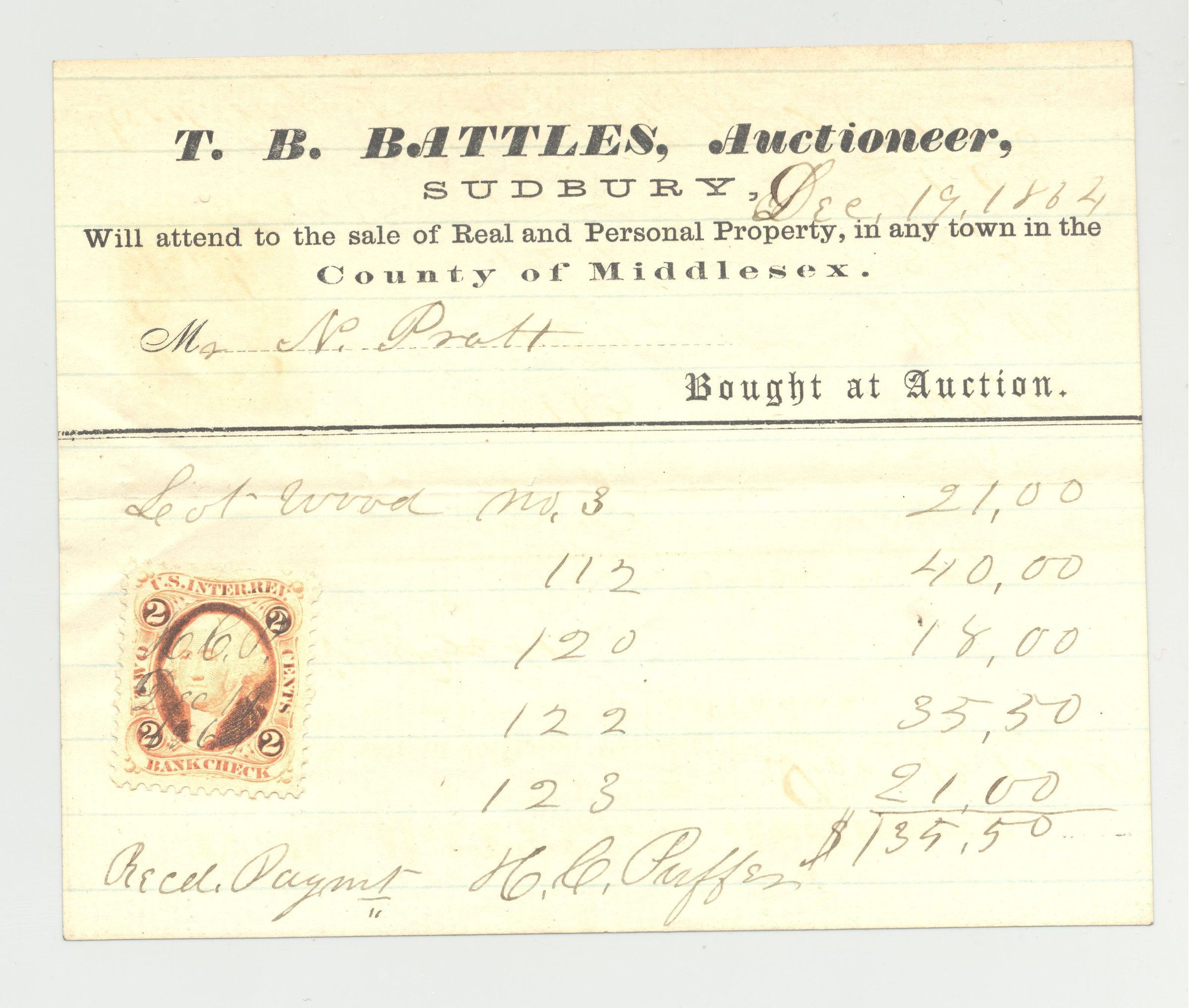 REC, 1864, T.B. BATTLES, AUCTIONEERS.